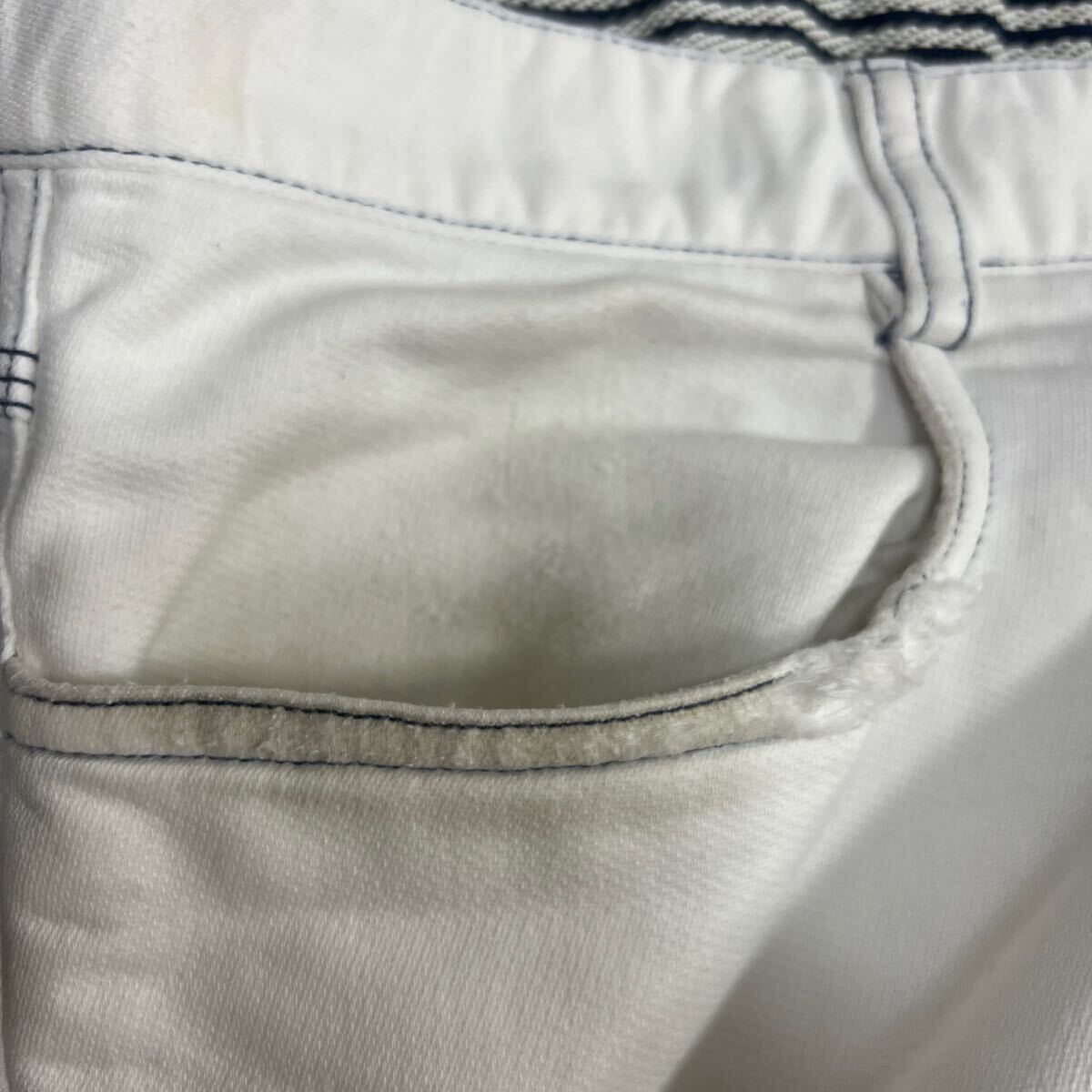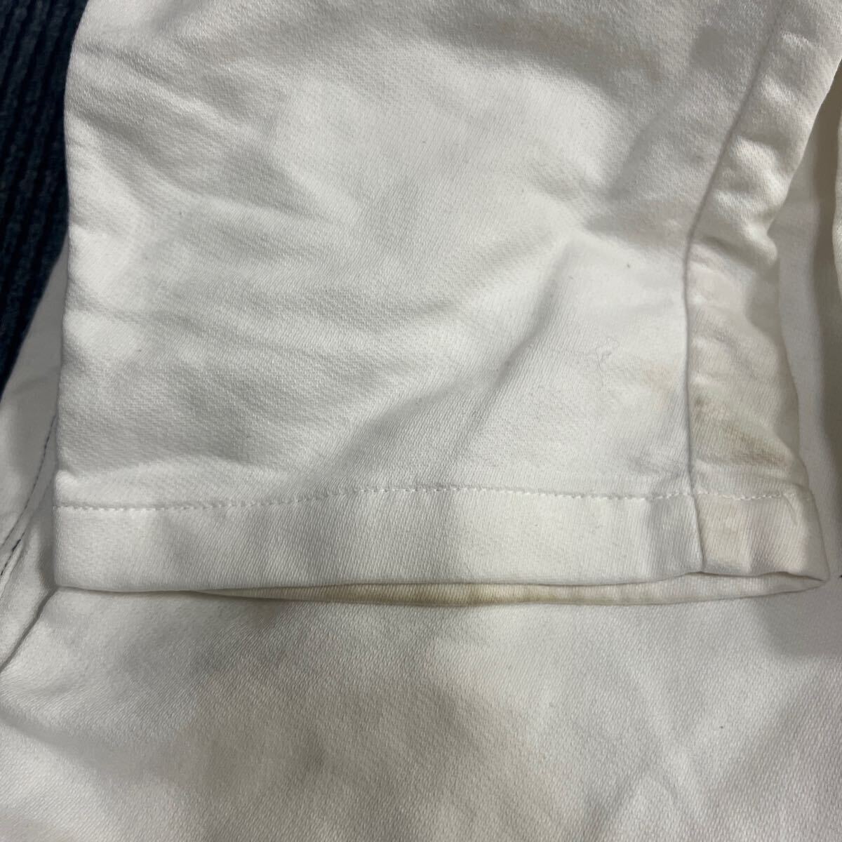 状態は、大きいダメージはないですが、全体的に多少色落ち、毛羽立ち、スレがあります。左ポケットと両裾に汚れあります。新品ではないかので、着用感は否めませんが、まだまだ使っていただけるかと思いますが、あくまでもユーズド品になりますので、神経質な方は入札はお控え下さい。