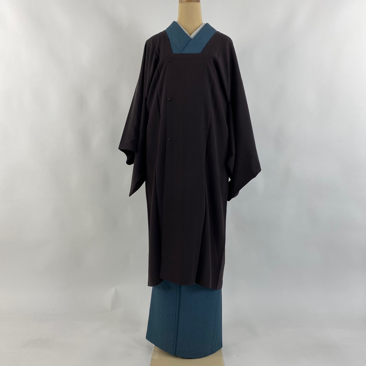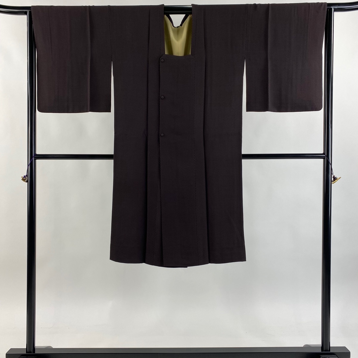 | 道行 美品 秀品 和装コート 角衿 亀甲 焦茶色 身丈113 裄丈66.5 M 正絹 【中古】 |