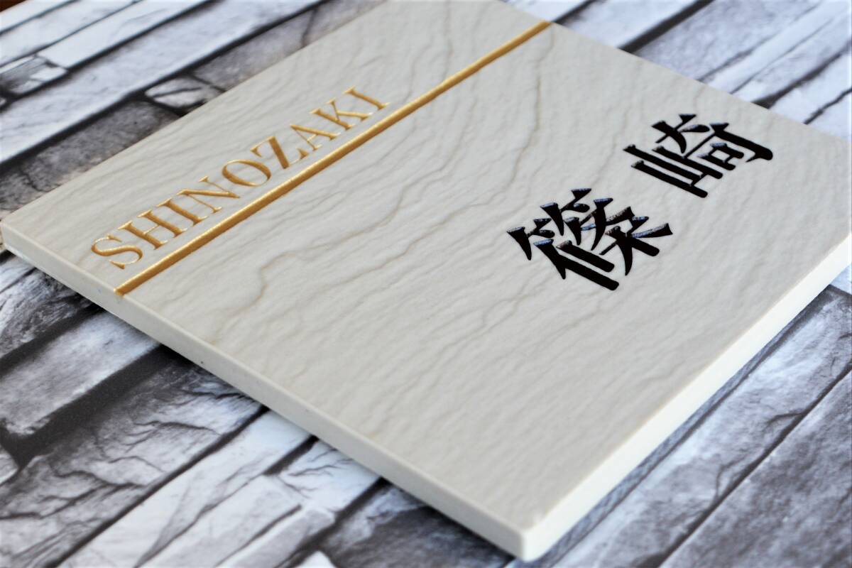 タイル表面の自然な波模様が特徴的なセラミックタイル表札になります。 サンドブラストブラスト工法による文字・デザイン部分を削り着色加工を施しています。 デザイン・フォント(書体)・タイル色は上記からお選び下さい。 着色はブラック・ブラウン・ホワイト・グリーン・イエロー・ゴールド・シルバー・ブルー・紺・チョコレート色、が対応可能です。その他の色についてはお問い合わせ下さい。 レイアウト変更、住所等文字の追加は無料です。 落札後メールアドレスをお知らせ頂ければ、完成イメージをメールにて添付可能です。確認して頂きデザイン・フォントの修正は無料にて可能です。 サイズ 縦144(㎜)×横144(㎜)×厚さ10(㎜) 納期はデザイン決定後ご入金を確認してから製作いたしますので確認後約1週間から10日でお届け致します |