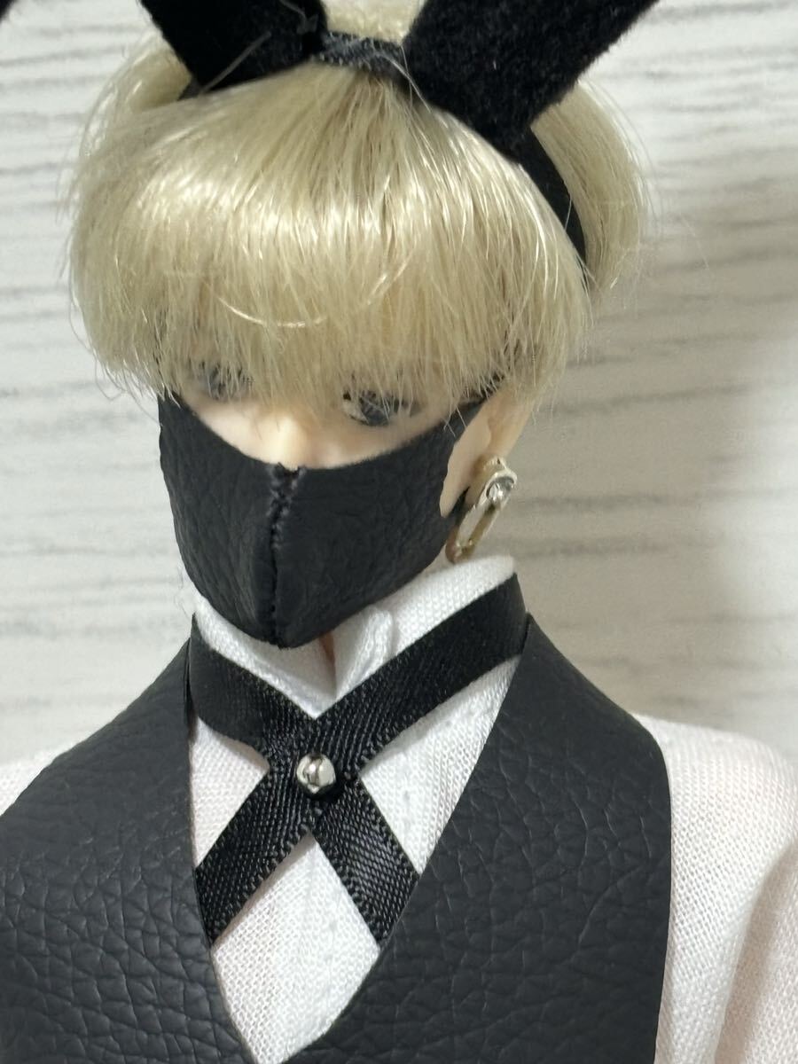 ●レザーマスク黒→横幅およそ5.5から6センチ程のドールが着用可能なフェイクレザー生地のマスクです。