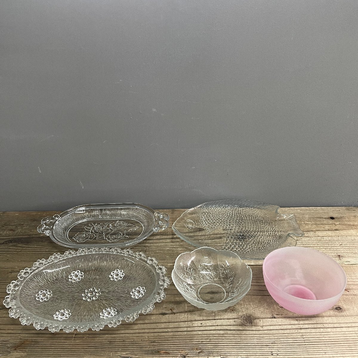 中古 昭和レトロ レトロ ガラス製品 お皿 魚 水玉 バラ 花柄 器 深皿 フルーツ皿 5点セット