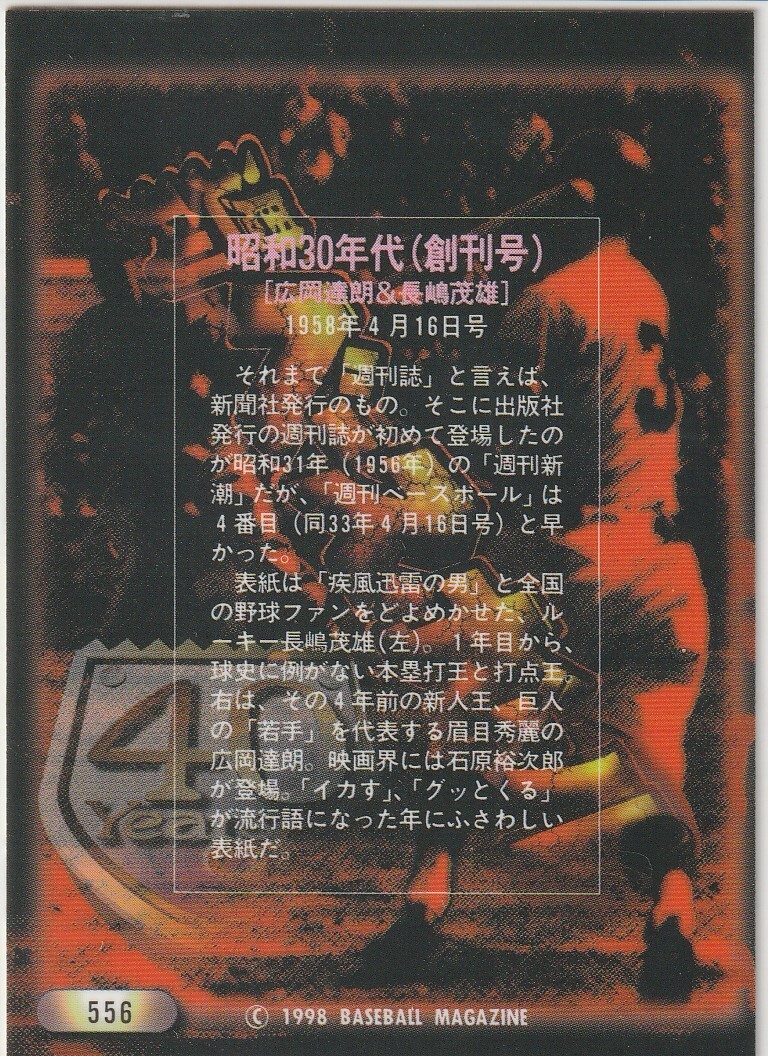 ●1998BBM/週刊ベースボール表紙カード【広岡達郎&長嶋 茂雄】58年創刊号 No.556:巨人