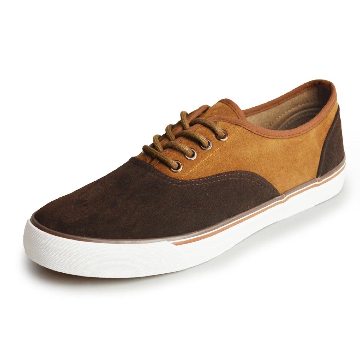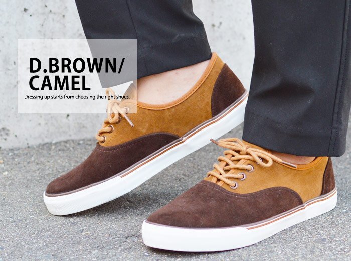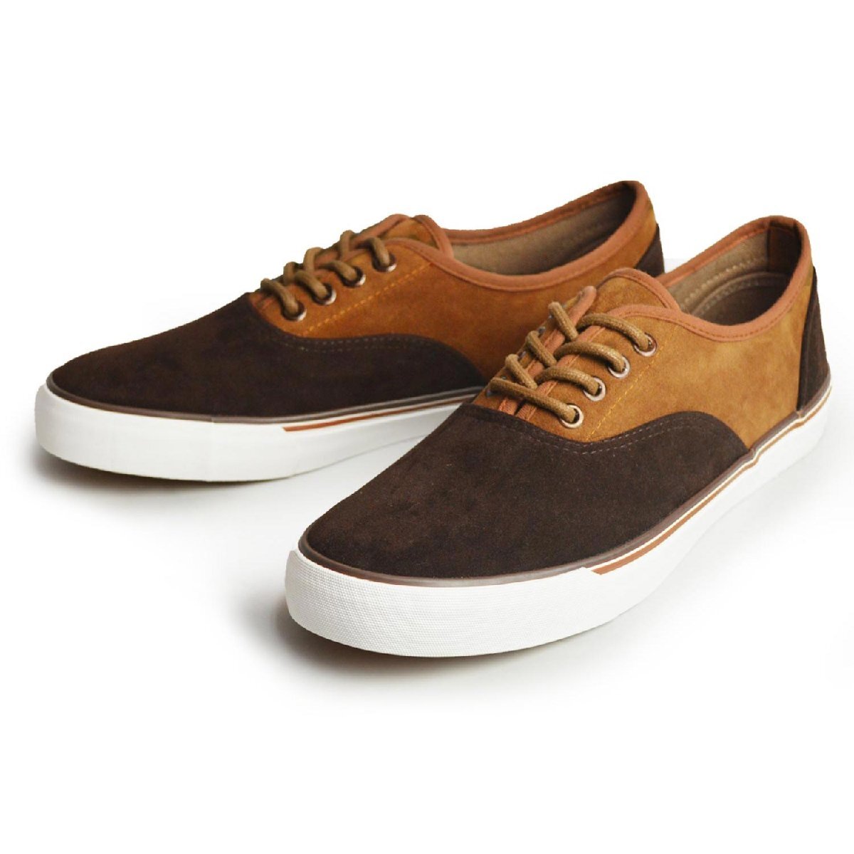 メンズ きれいめ カジュアル デッキシューズ 軽量 バイカラー スニーカー 紐靴 フラット クッション スエード 0524
