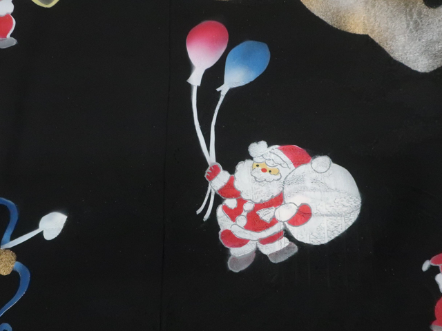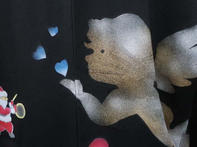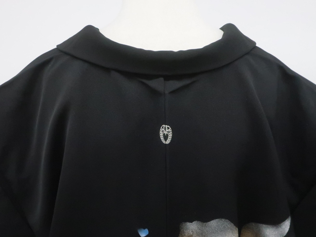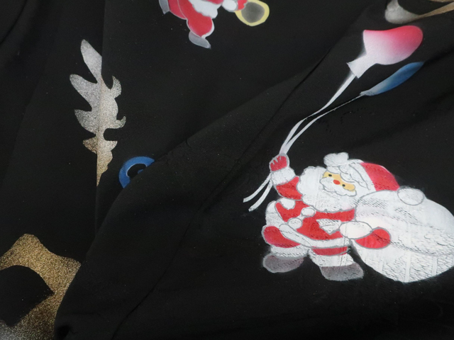| リサイクル商品のため、所々金彩飛びがございます。 右後袖と後身に薄汚れがございますが着用可能なお品です。 地色は黒です。 1枚目の画像が近いお色かと思われます。 素材は正絹です。 |