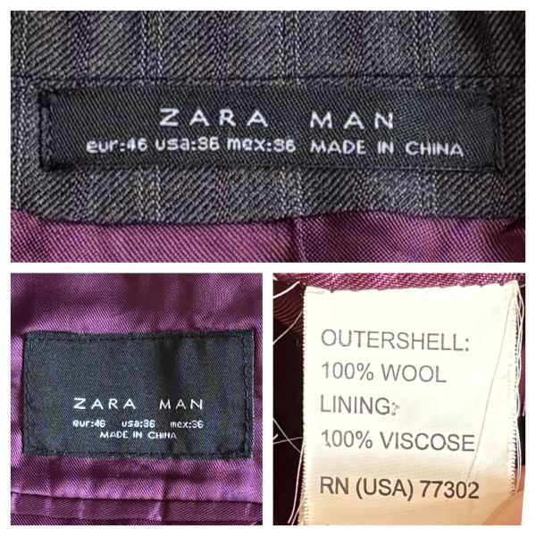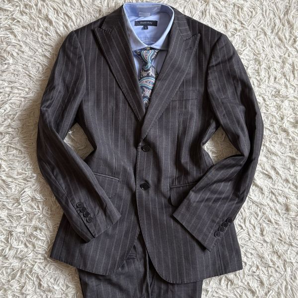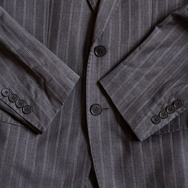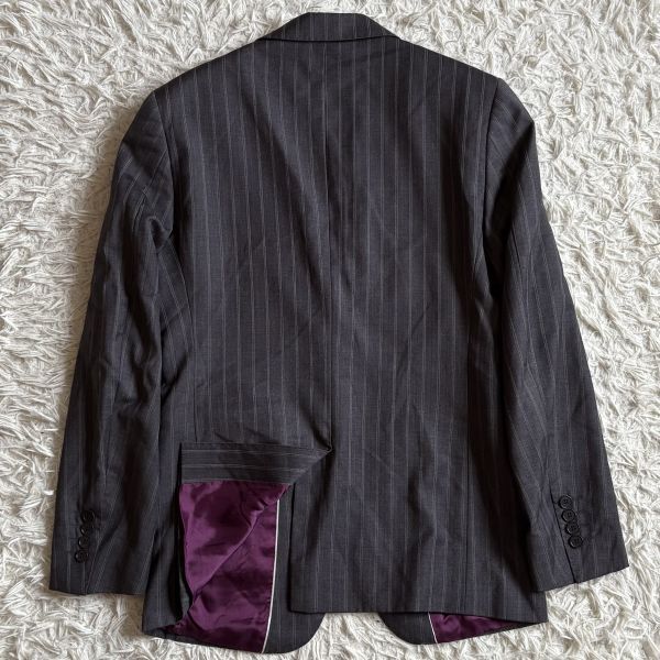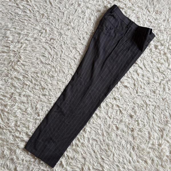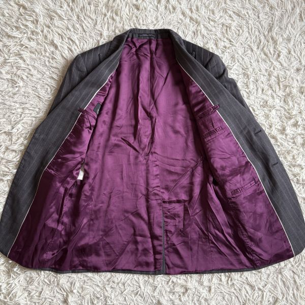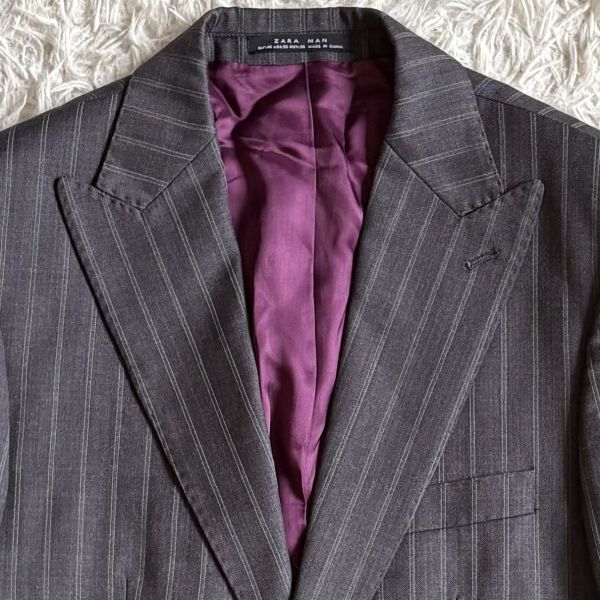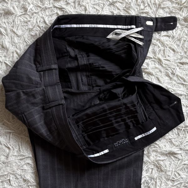★美品★ZARA MAN★秋冬 総裏 46 M相当 ウール100 メンズ セットアップ スーツ ダークグレー ストライプ ザラマン 結婚式 パーティー
