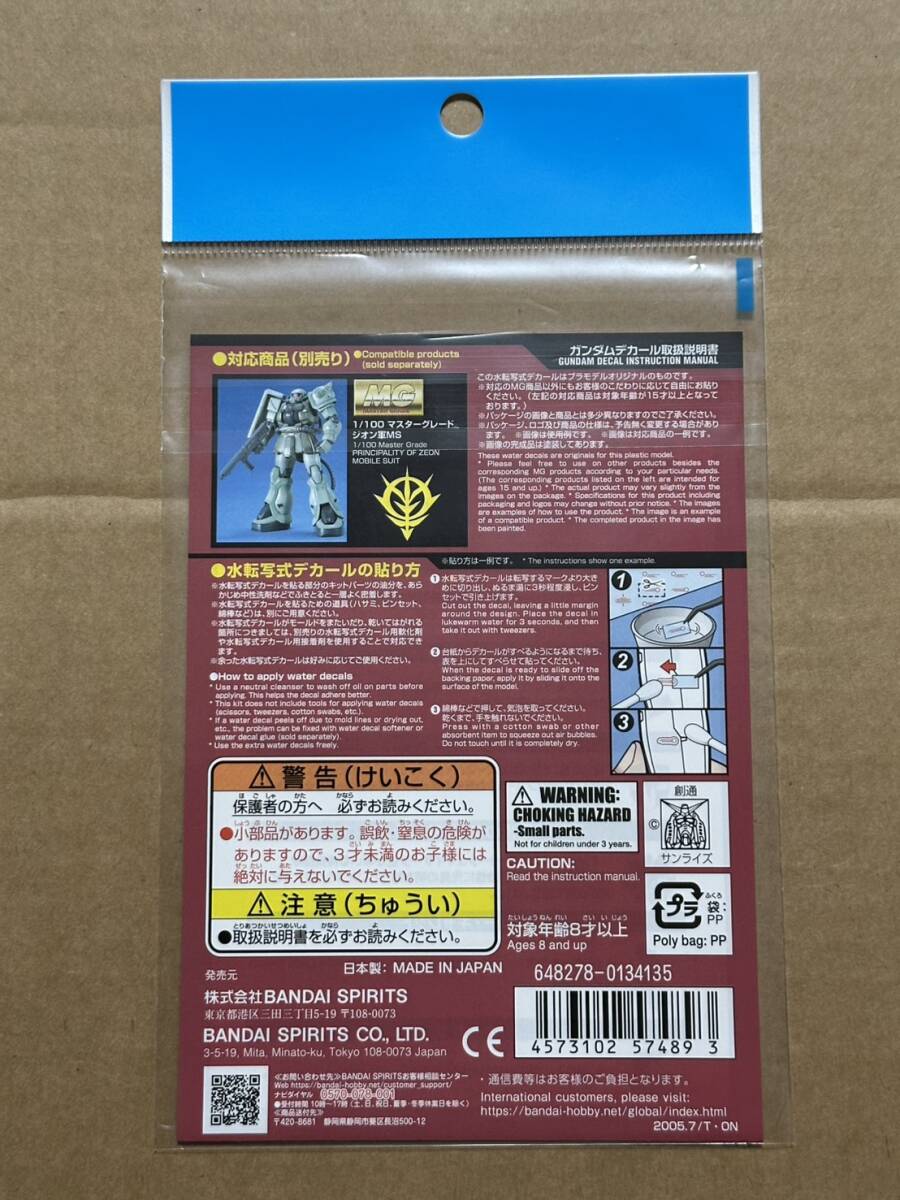 ガンダムデカール 17 ジオン軍MS用① MG 1/100 マスターグレード 1 新品未開封品 水転写式デカール ガンプラ バンダイスピリッツ