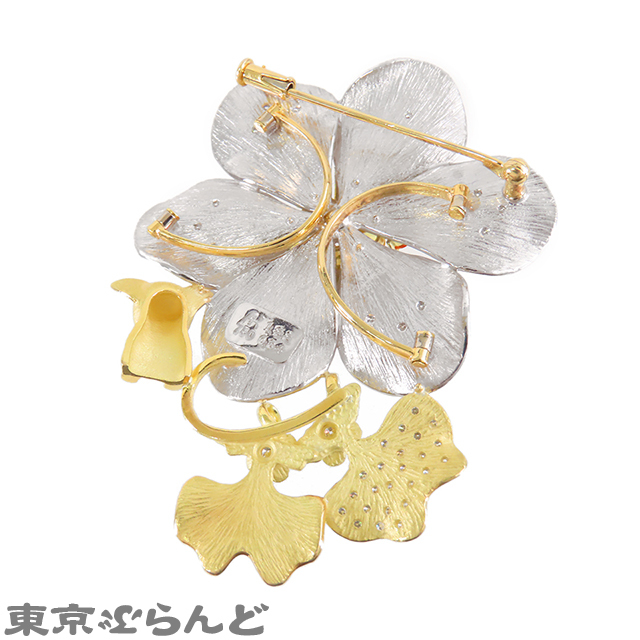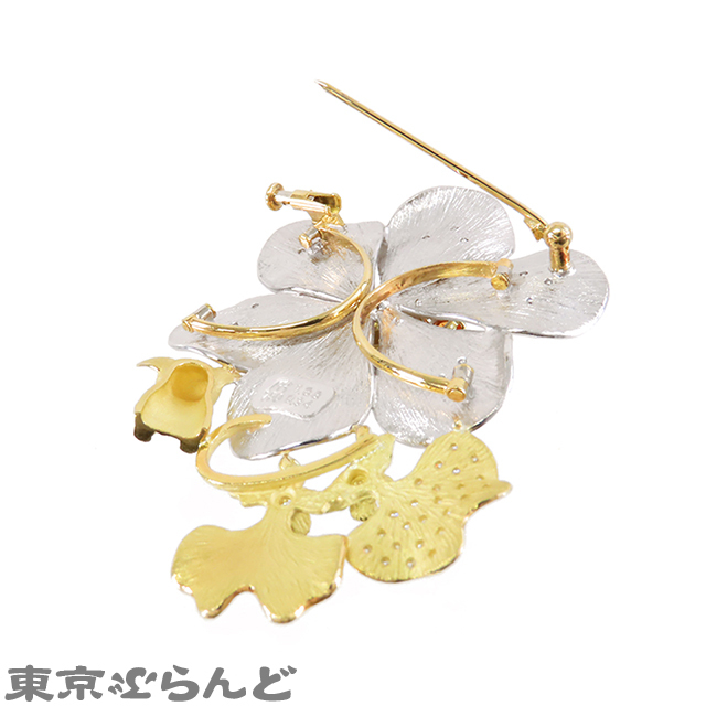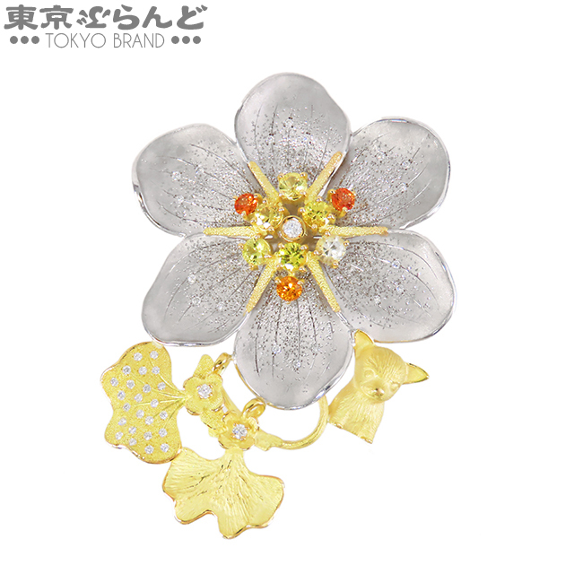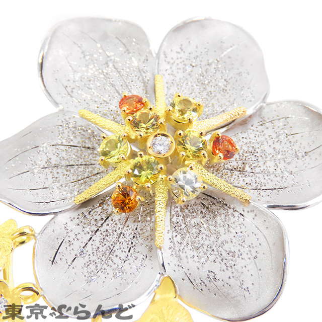 241100079286 池田啓子 オンシジューム フラワーモチーフ ペンダントトップ K18YG K18WG ダイヤモンド×サファイア 1.88ct 0.34ct ブローチ