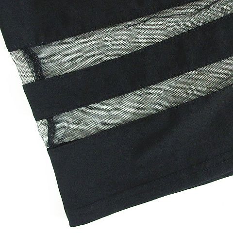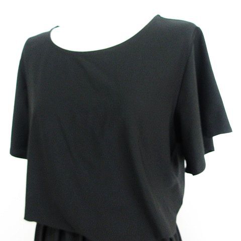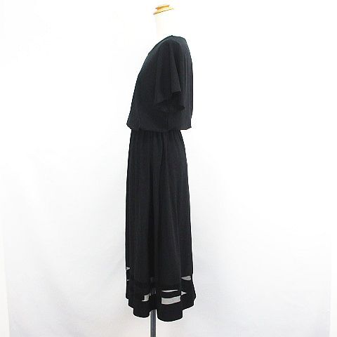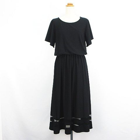 イング INGNI ワンピース チュニック 半袖 ラウンドネック ロング丈 マキシ丈 裾シアー ストレッチ M ブラック ※EKM レディース