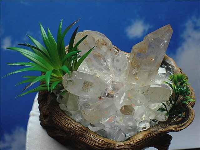 【クリスタルクォーツ(白水晶)】 無色透明の水晶。世界中で最も知られ、その効果は万能とされ、水晶といわると一般にイメージするベーシックな水晶です。その透きとおった姿を見ているだけで、すがすがしい気持ちにさせてくれそうです。 あらゆる水晶の中でも基本となりますので、そのパワーは強力かつオールマイティとされています。