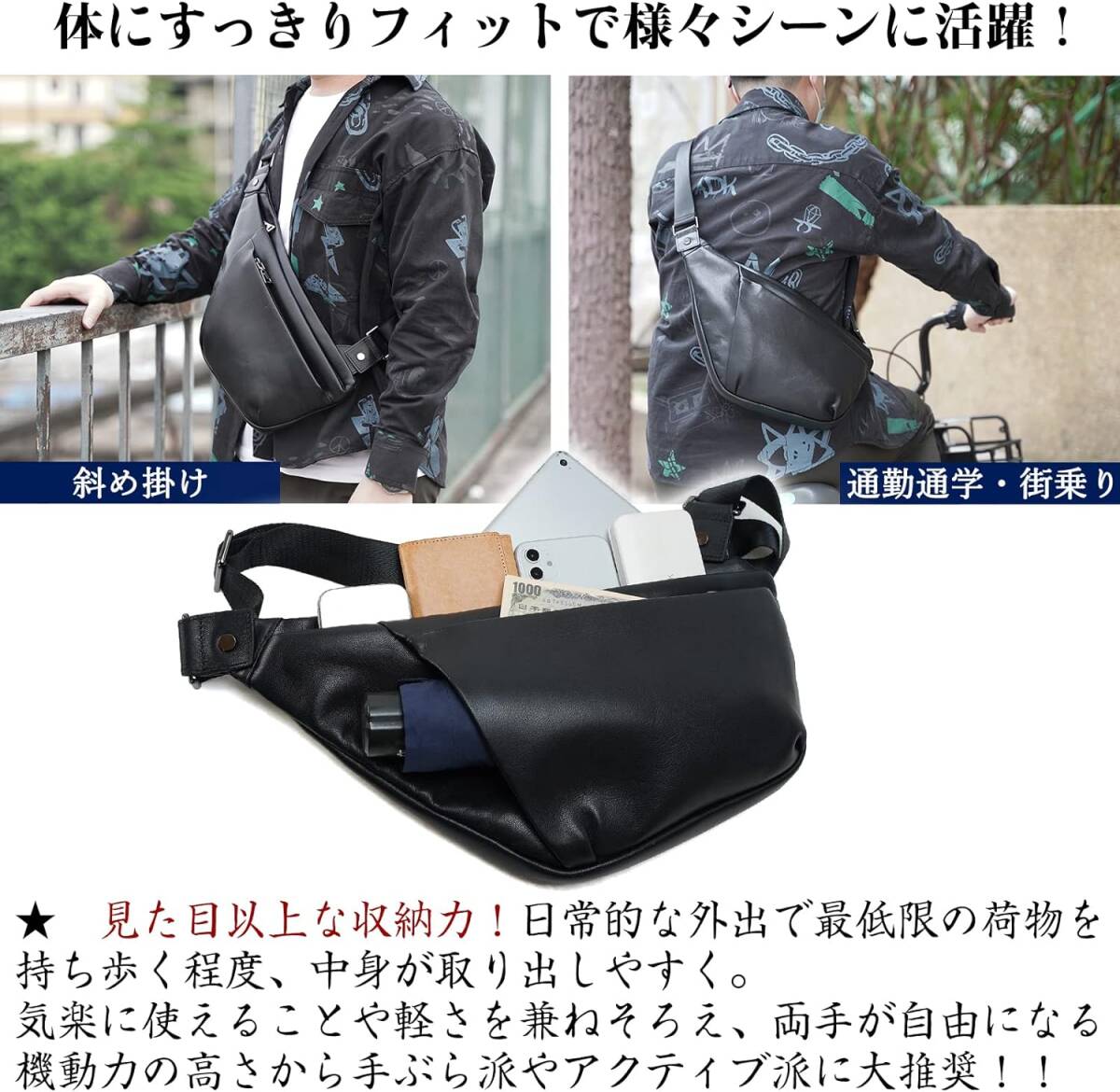 ◎1~3日以内での発送完了を目指しております。メイン素材として上質なレザーを使用した極薄1.5cmのボディバッグです。軽量かつフィット感に優れており、コートやジャケットの下に着用しても邪魔になりません。沿って柔らかな手触りと高級感が特徴です。