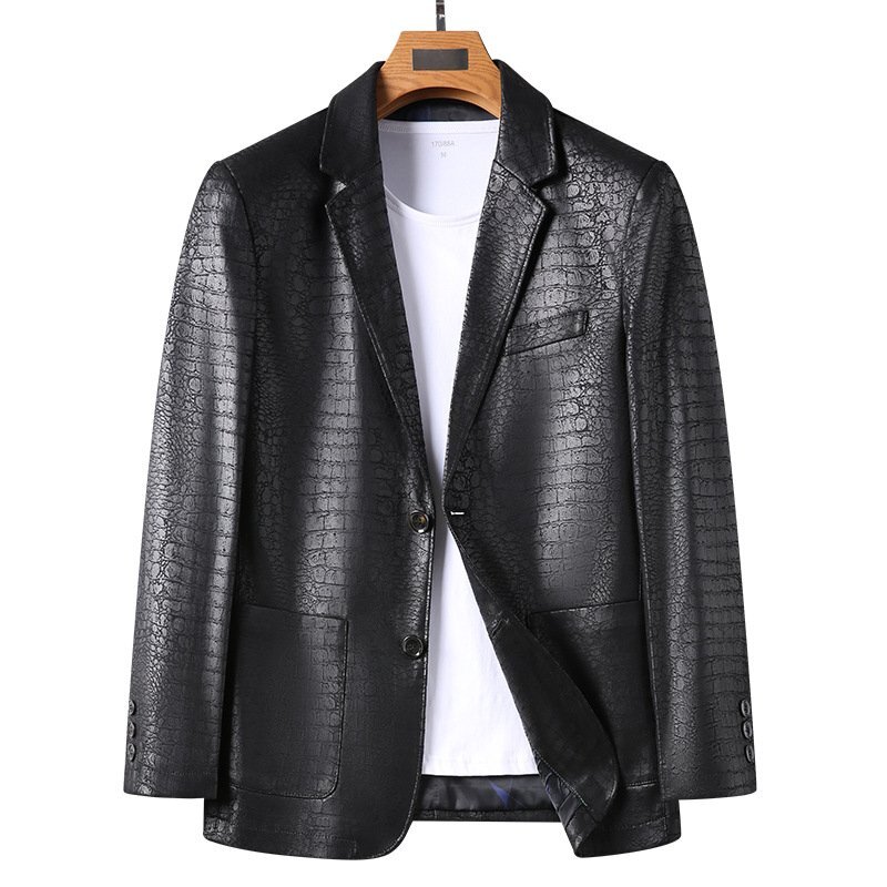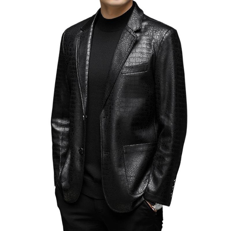 最高級 イタリア製造&最上級羊革 メンズ 独特なワニ柄 本革ジャケット ブレザー 薄手 アウター シングル 紳士 通勤 SIZE:2XL fz40