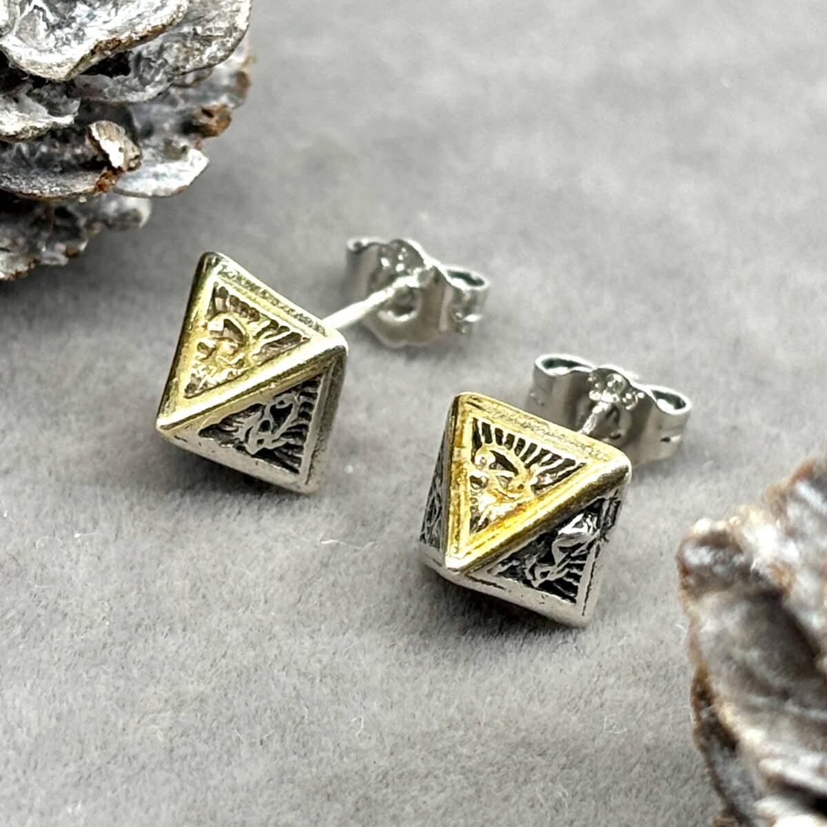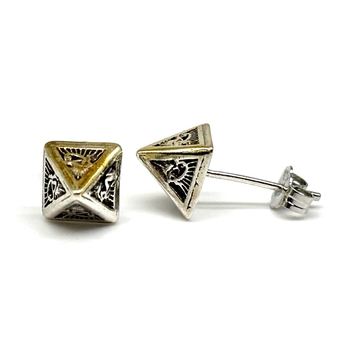 フリーメイソン スタッドピアス ◆ キャッチピアス メンズ シルバー925 20G 新品 人気 未使用 ストリート カジュアル 両耳用 【PN338-8】