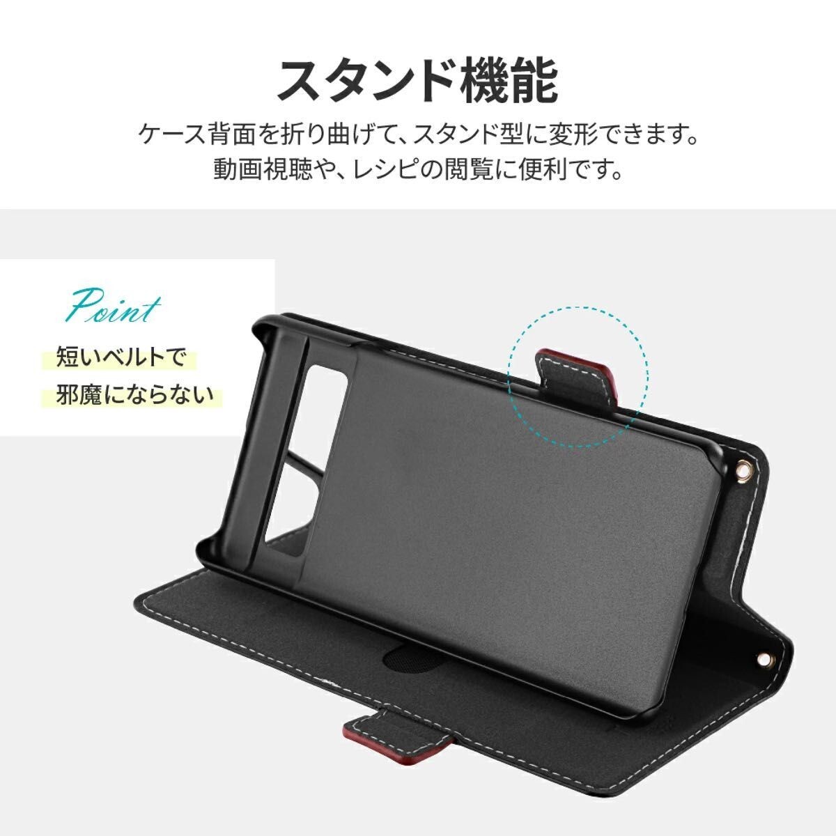サイドベルトがバイカラーになった遊び心ある手帳型ケース/