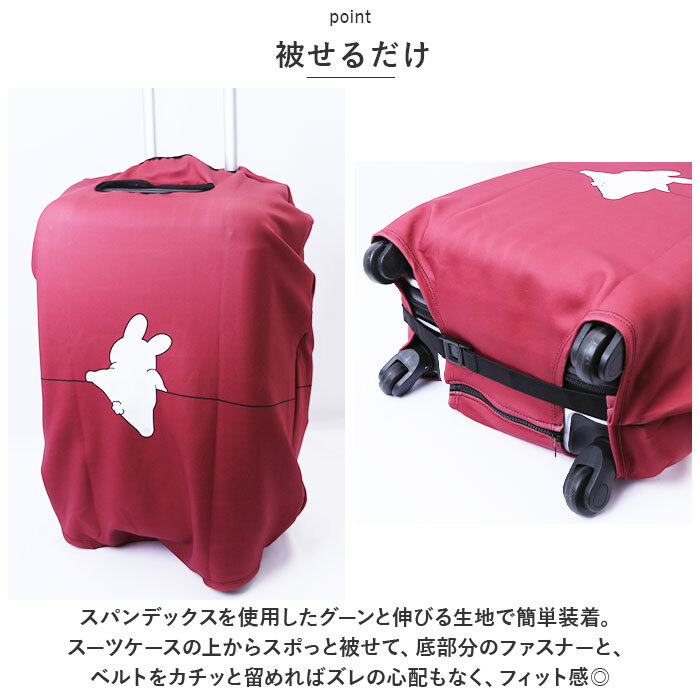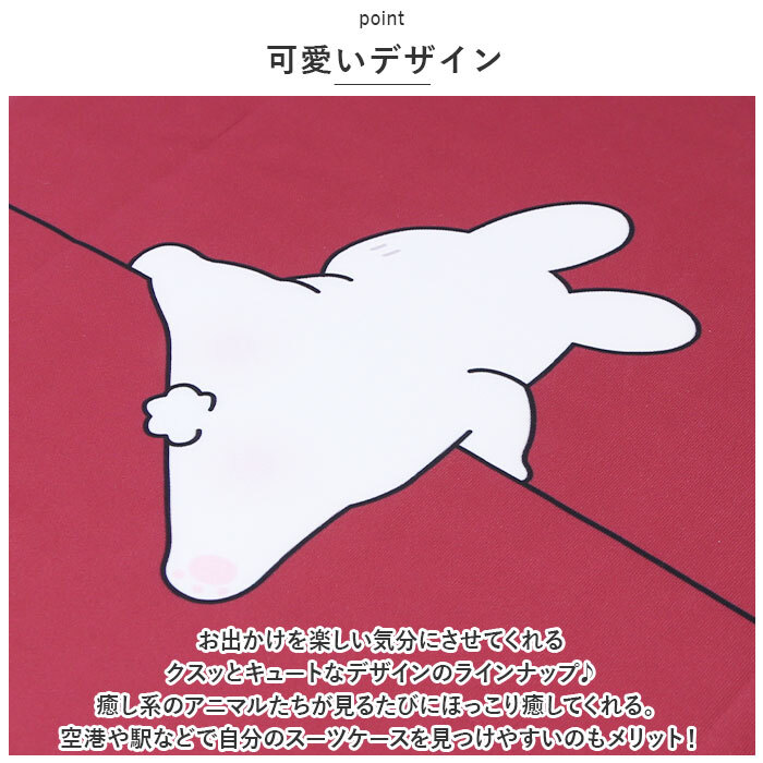 | 商品説明 | ・・クスッとキュートな癒し系アニマル☆傷や汚れから可愛くガード!「スーツケースカバー」が登場。 ・【スーツケースの傷対策に】 ・ポリエステル使用の生地なので、耐摩耗性にも優れスーツケースを傷や汚れから保護してくれる。旅行や出張にピッタリのアイテム。 ・【可愛いデザイン】 ・お出かけを楽しい気分にさせてくれるクスッとキュートなデザインのラインナップ♪癒し系のアニマルたちが見るたびにほっこり癒してくれる。 ・空港や駅などで自分のスーツケースを見つけやすいのもメリット! ・【被せるだけ】 ・スパンデックスを使用したグーンと伸びる生地で簡単装着。スーツケースの上からスポっと被せて、底部分のファスナーと、ベルトをカチッと留めればズレの心配もなく、フィット感◎ ・【サイズ、デザインいろいろ】 ・スーツケースのサイズに合わせてチョイスOK!デザインも豊富なのでご家族やカップルでお揃いにするのもGOOD♪ |