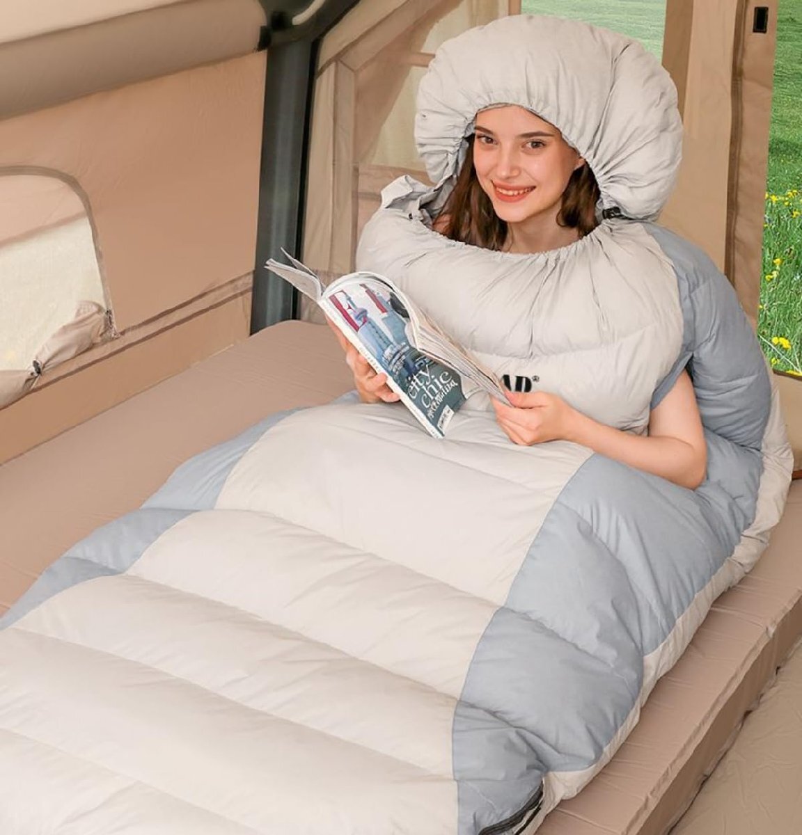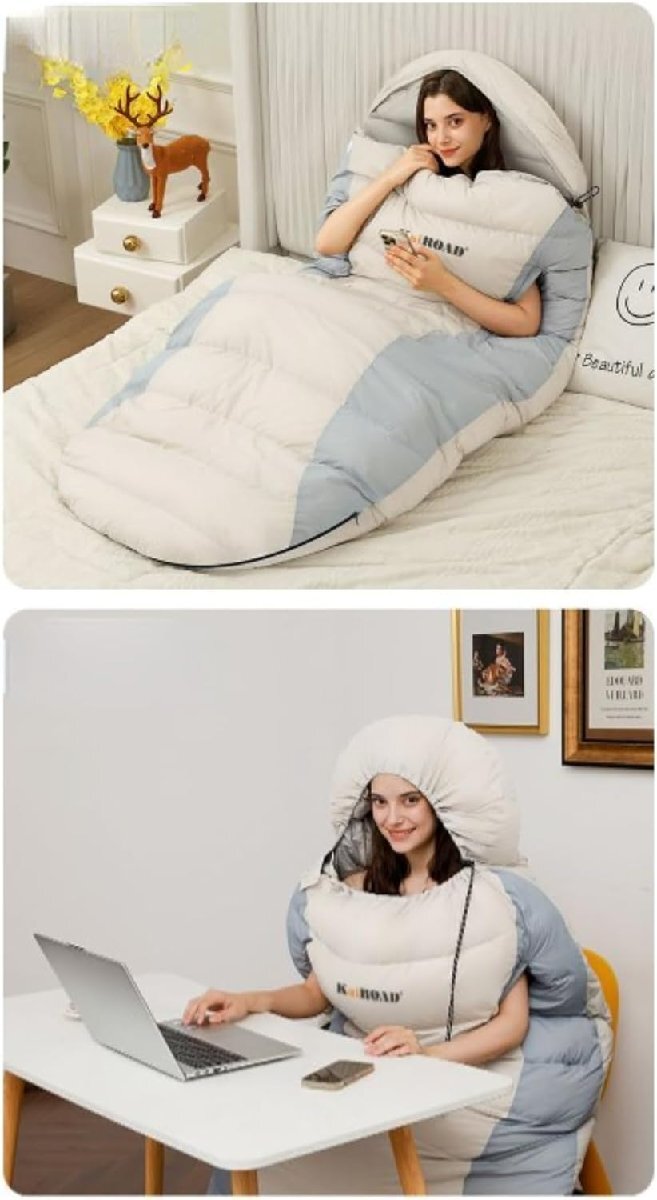 ■ キャンプアウトドアウォームダウン寝袋、ユニークなデザイン、腕と足を伸ばすことができます。