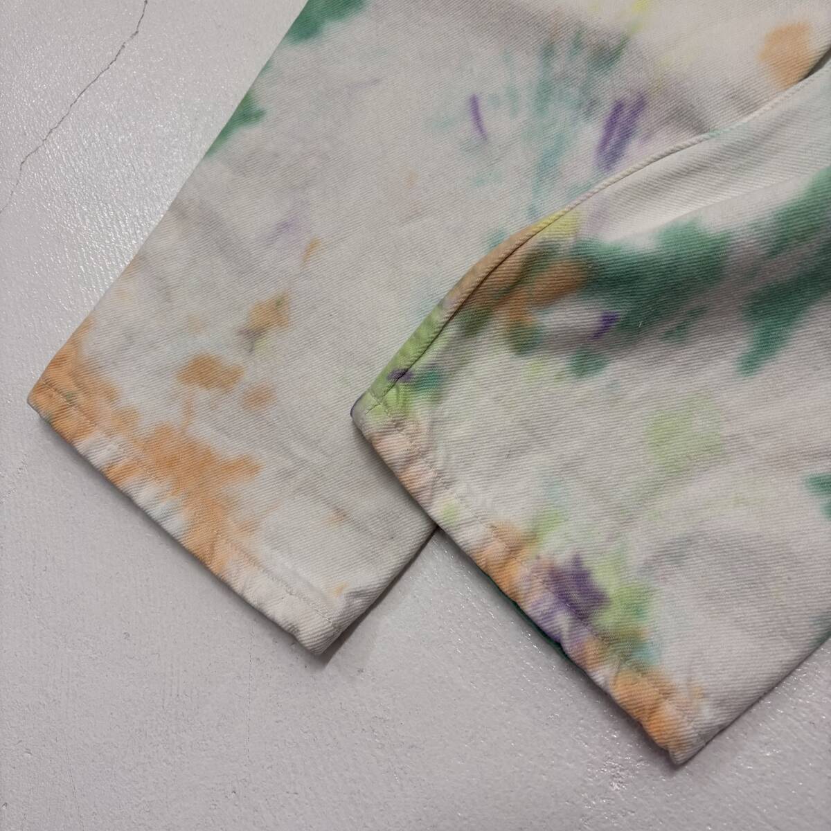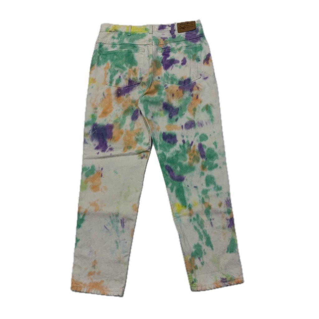 アメリカ古着になります。 90年代のビンテージです。 珍しいタイダイ染めのデニムパンツ。 恐らくオリジナルかと思います。 黒タグ、ジッパーはYKK。 股上が深めのややテーパードシルエットです。 洗濯済みになります。お探しの方におすすめです。 | |||