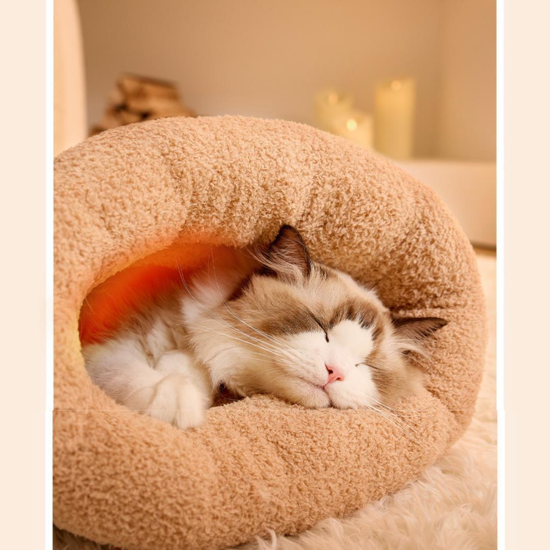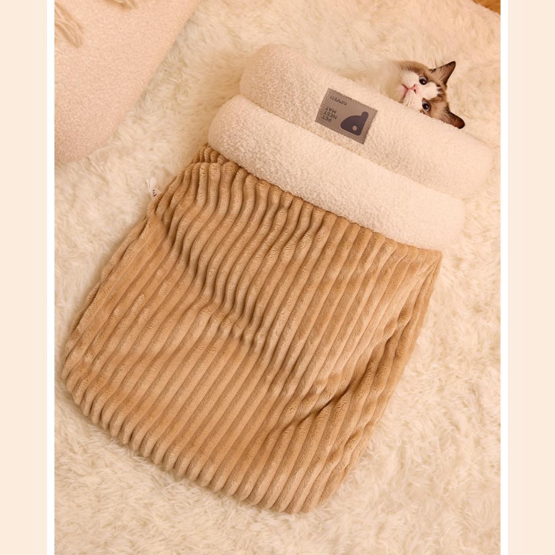 2WAYで使える筒型のふわふわペットクッション&寝袋♪ 密封式デザインで安心感抜群。冬の寒い夜や冷え込む季節も、ポカポカの素材でぐっすり快適な眠りをサポートします。