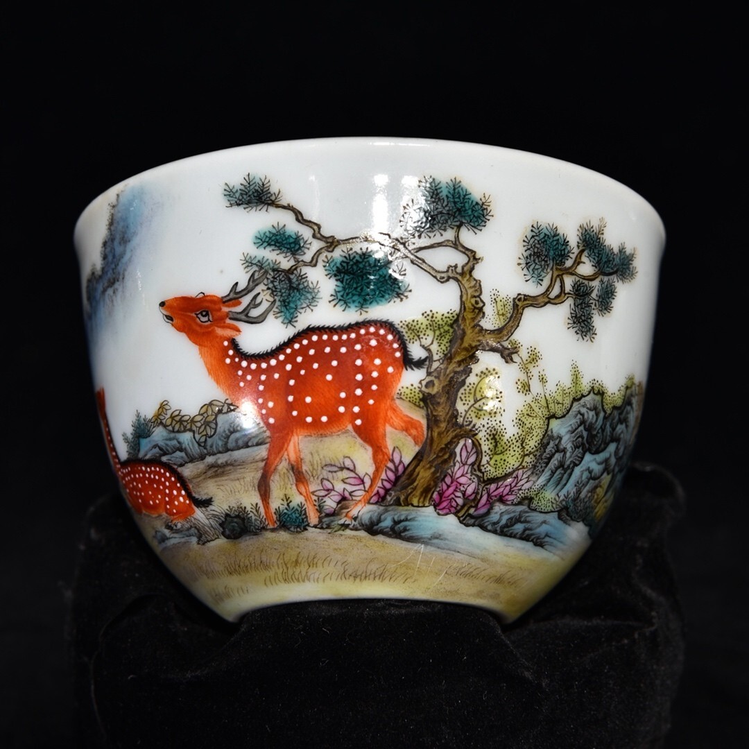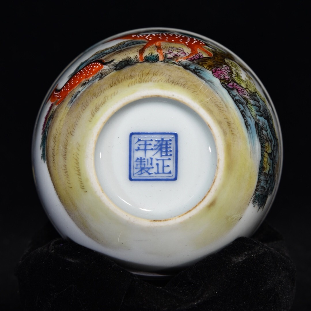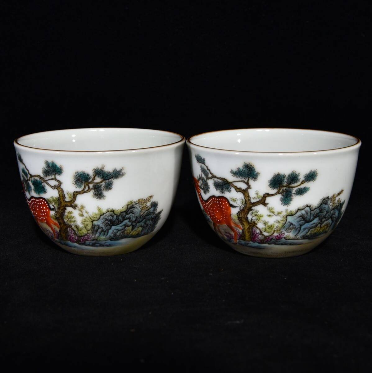 【永】清時代 雍正年製 琺瑯彩 鬆鹿紋壓手杯 一対 古陶磁器 陶芸 皿 中国陶瓷器 唐瓷 置物擺件 古美術品 古賞物 収集 旧家蔵出 中国唐物 A9