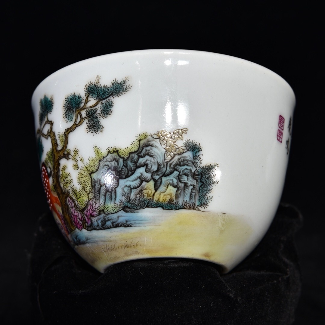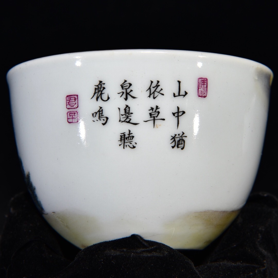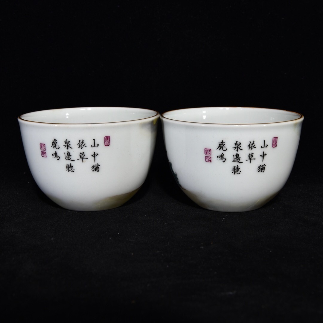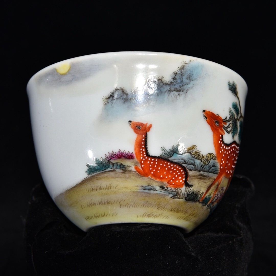 【永】清時代 雍正年製 琺瑯彩 鬆鹿紋壓手杯 一対 古陶磁器 陶芸 皿 中国陶瓷器 唐瓷 置物擺件 古美術品 古賞物 収集 旧家蔵出 中国唐物 A9