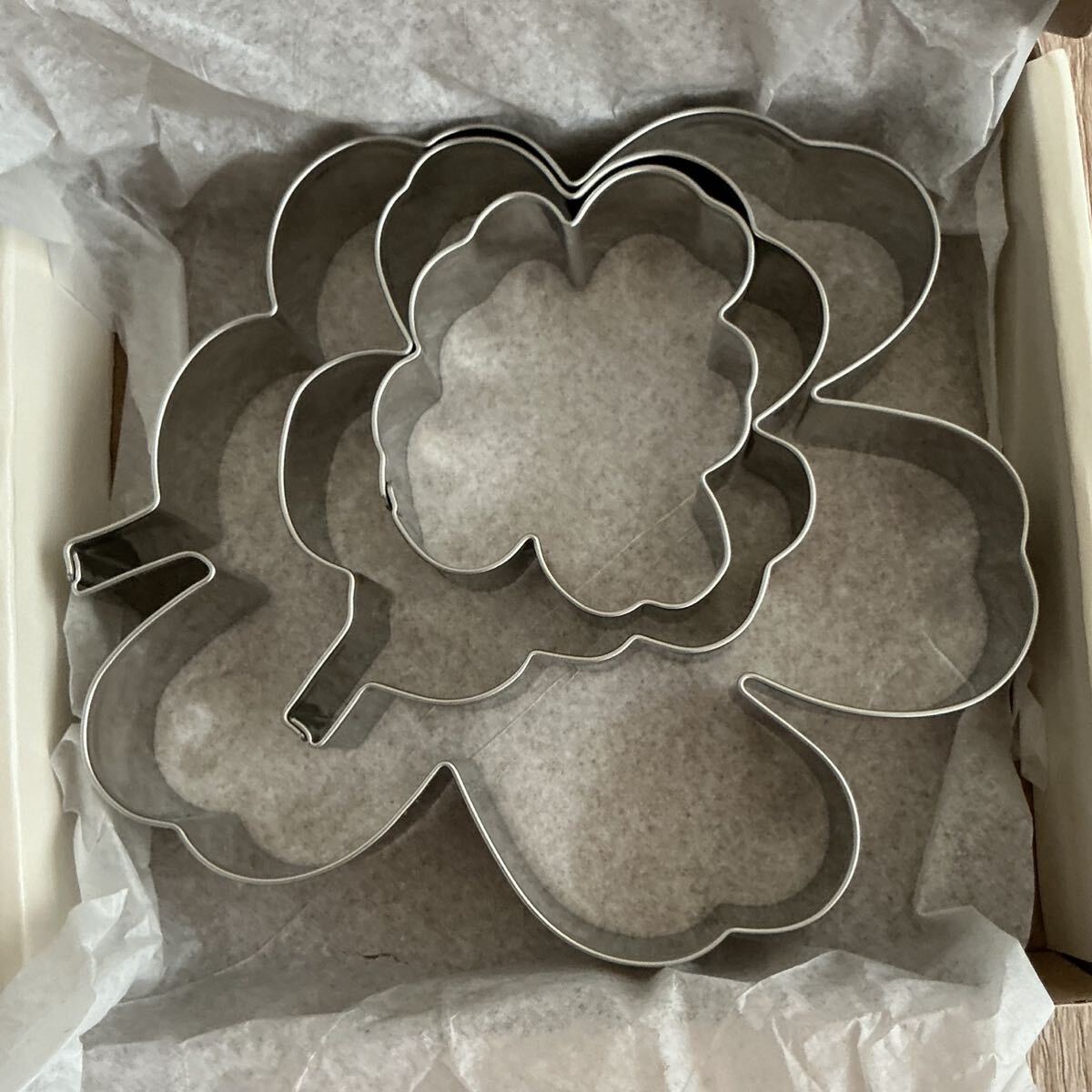 大きさの異なる型を3個組み合わせました。ホームメイドのクッキーを作るのが楽しくなるアイテムです。焼きあがったクッキーは、ホームパーティーでのおもてなしやプレゼントとしても喜ばれそうです。