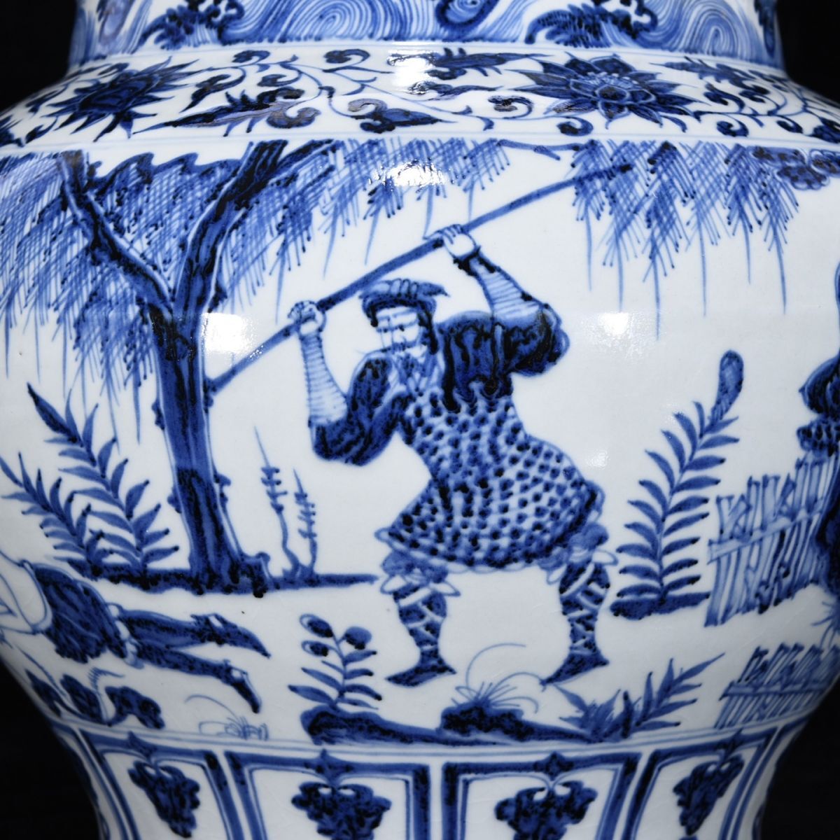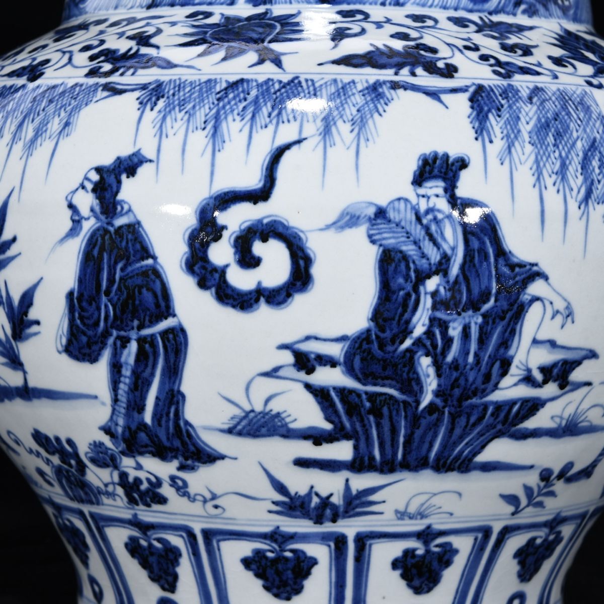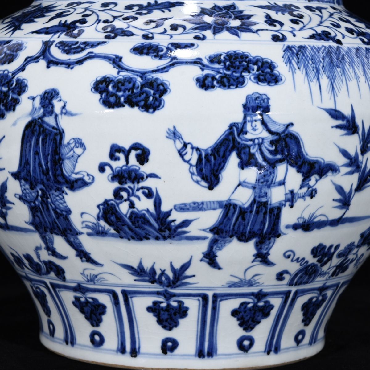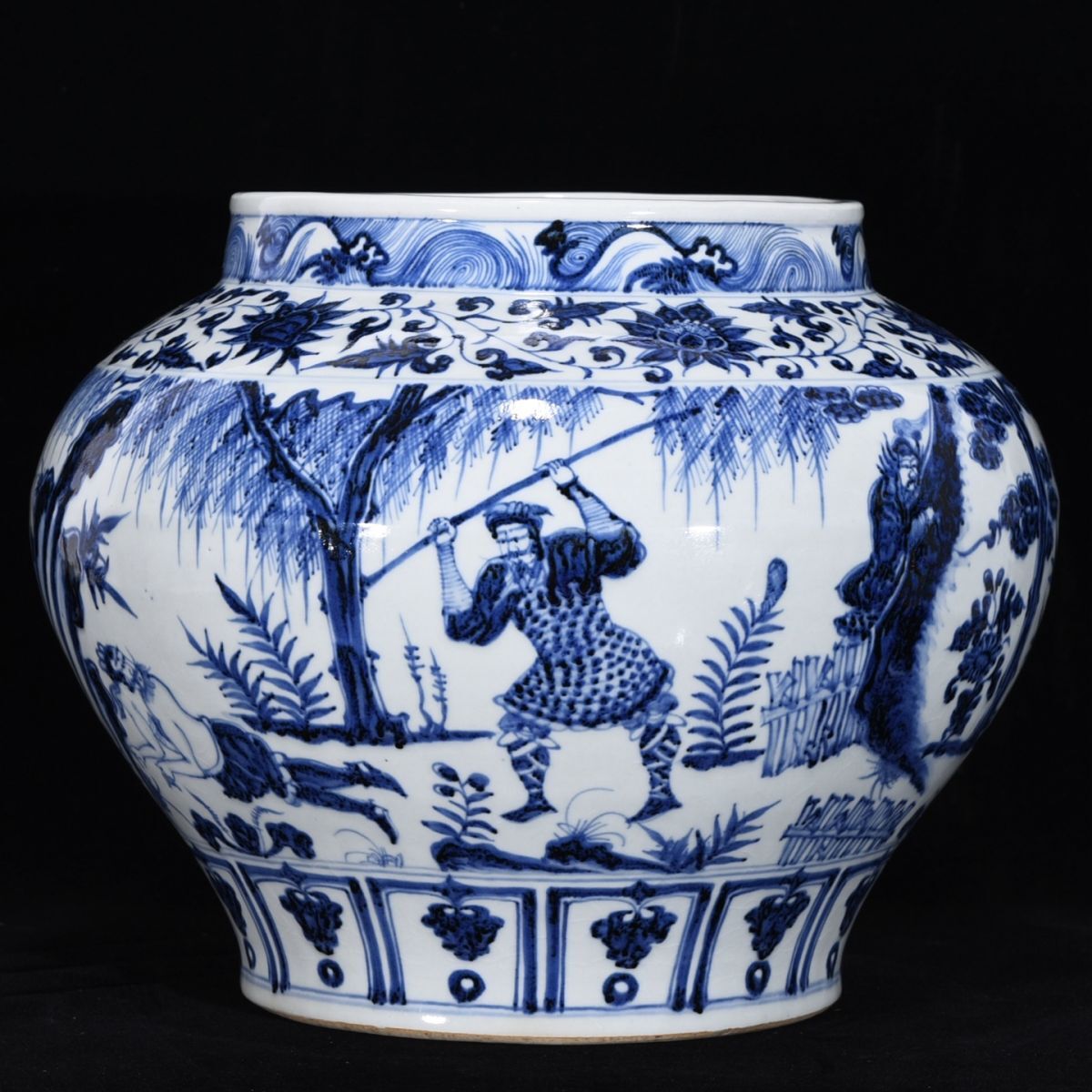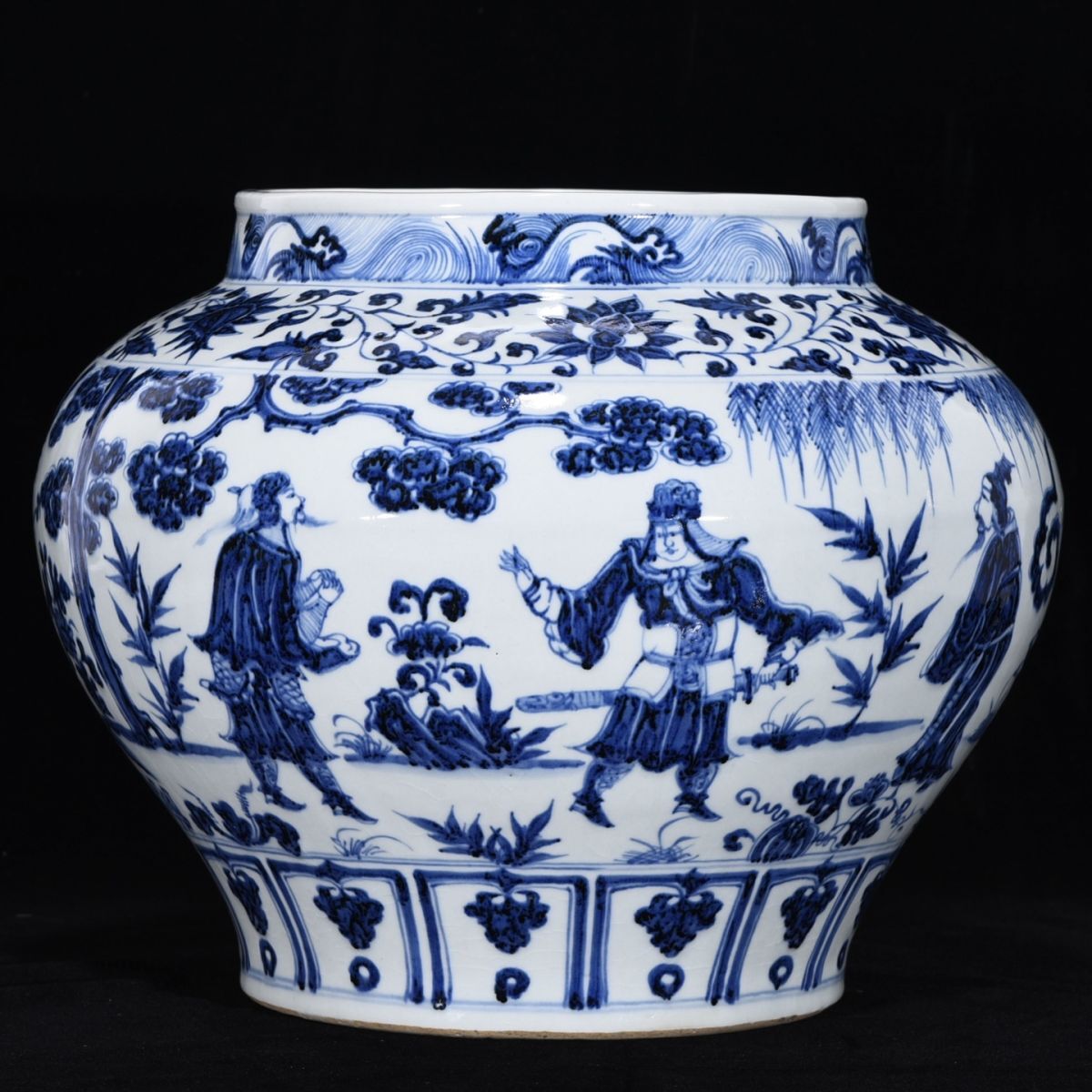【永】元時代 青花三顧茅廬人物罐 古陶磁器 陶芸 皿 中国陶瓷器 唐瓷 置物擺件 古美術品 古賞物 収集 旧家蔵出 中国唐物 A4858