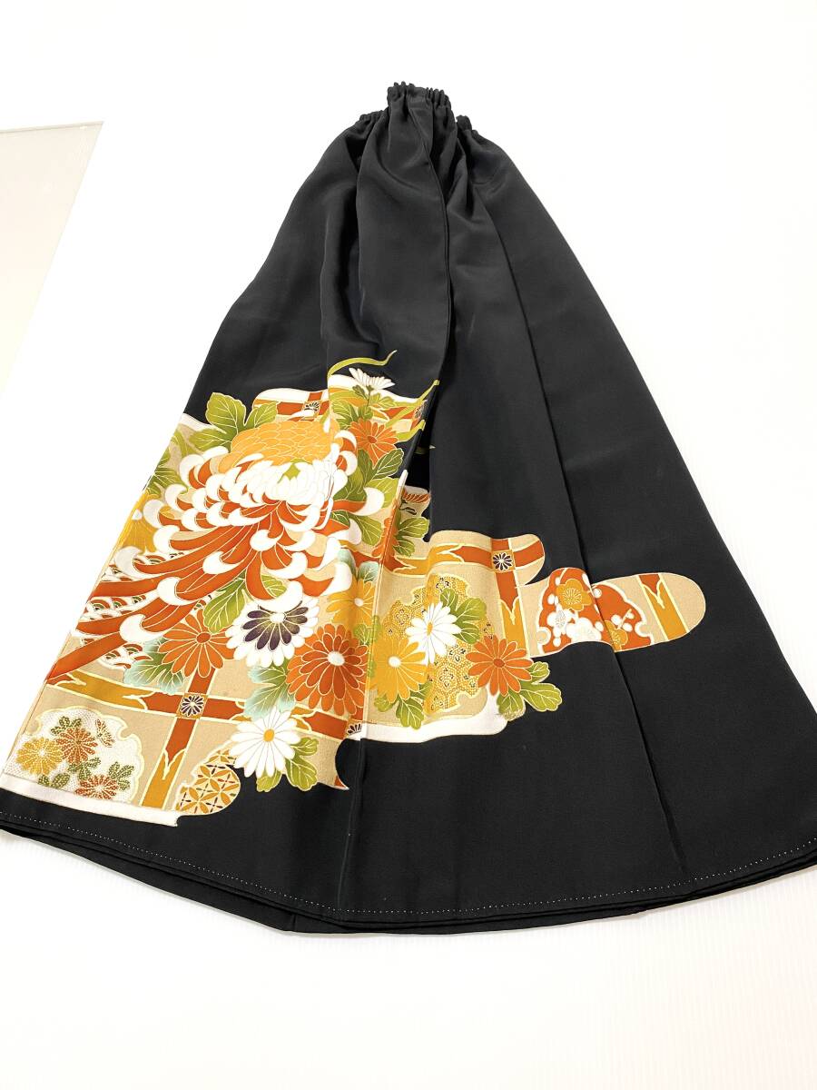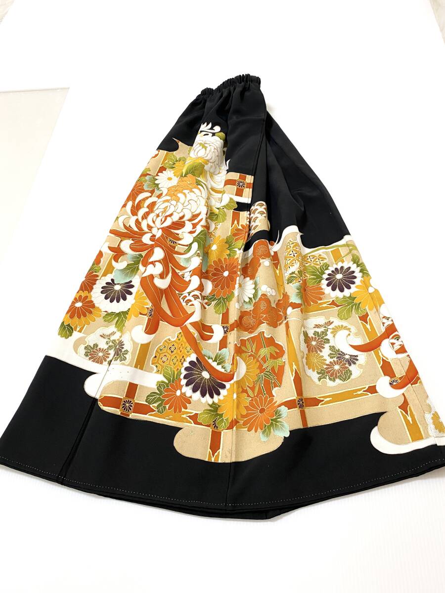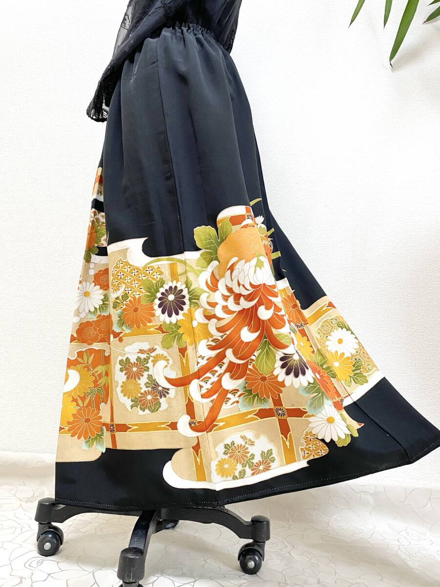 大人可愛いセレブ着物スカートフリーサイズ黒留袖着物リメイクウエストゴムロングスカート