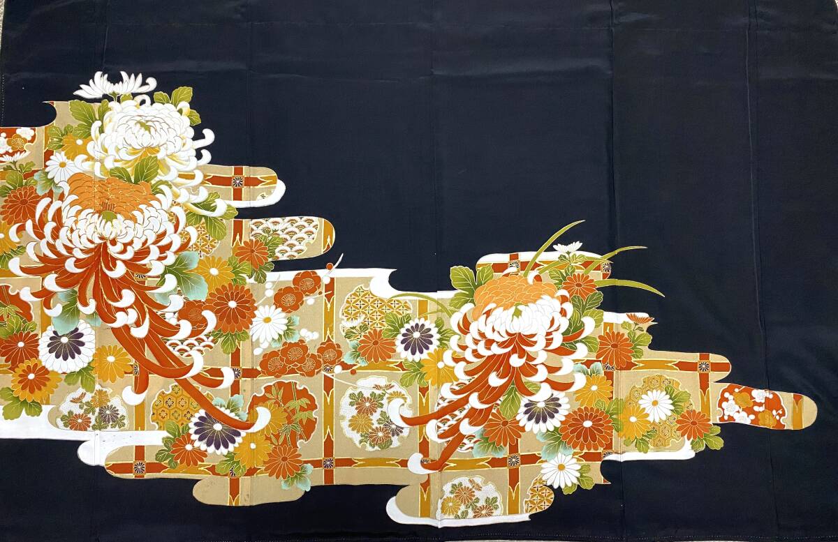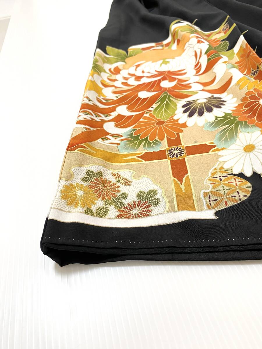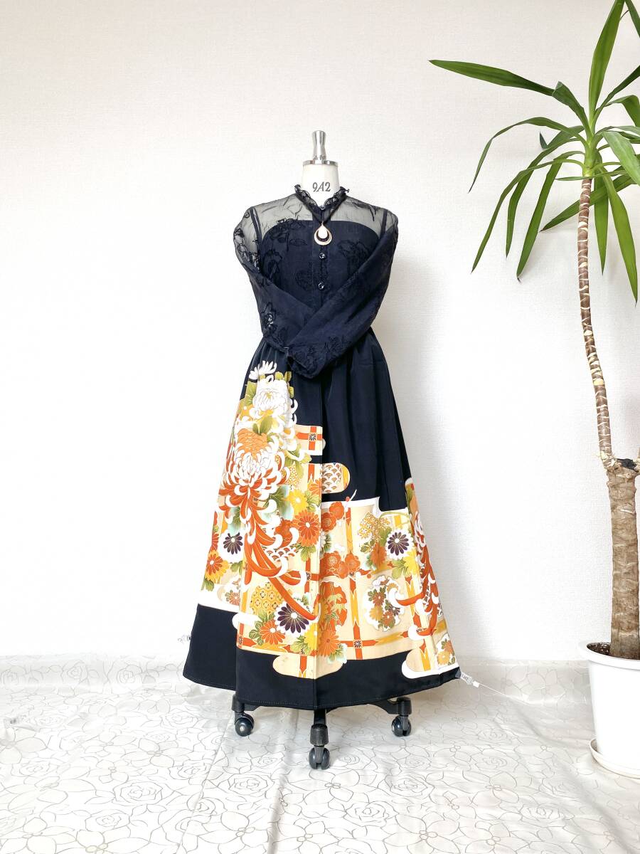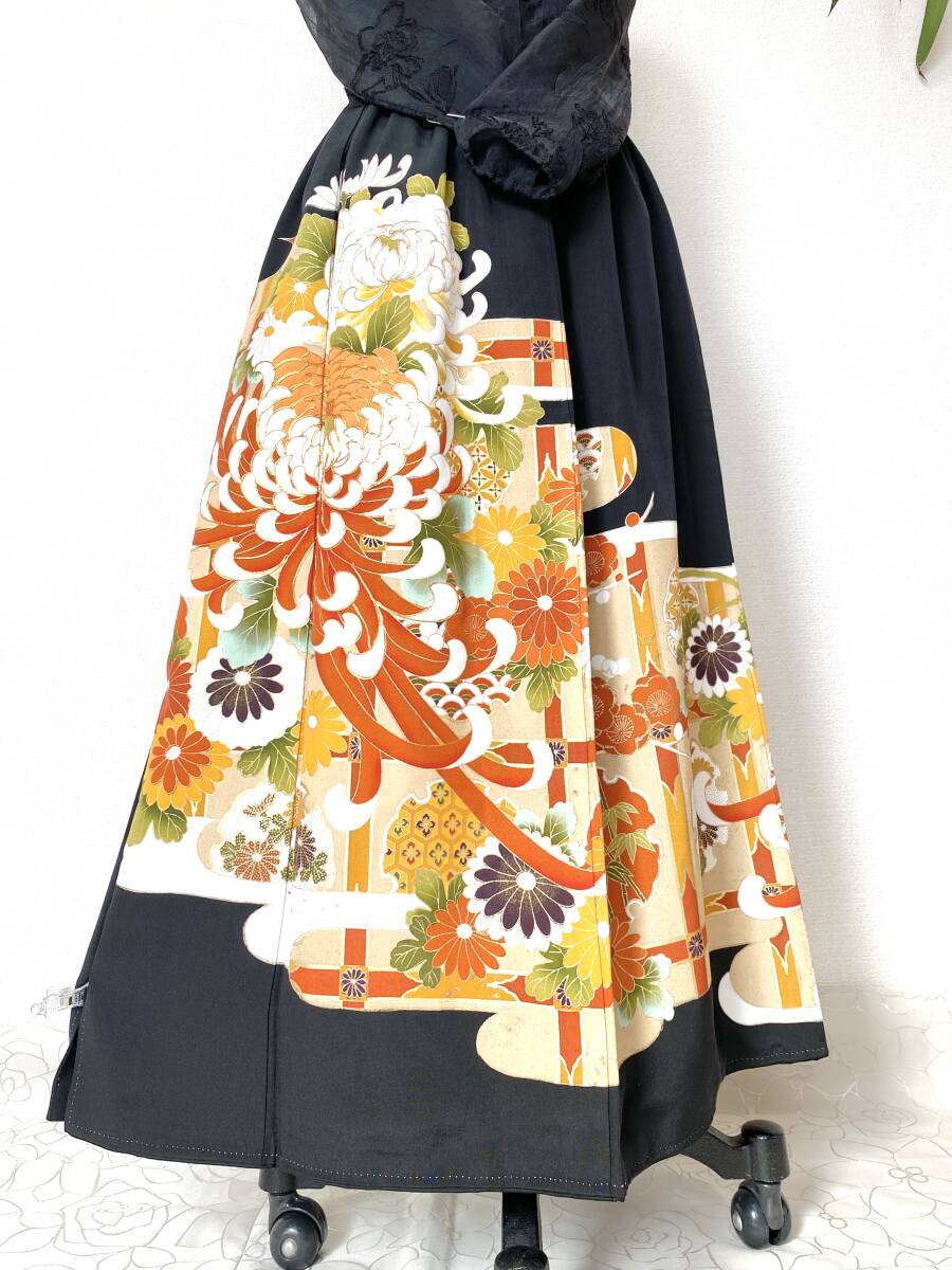 大人可愛いセレブ着物スカートフリーサイズ黒留袖着物リメイクウエストゴムロングスカート