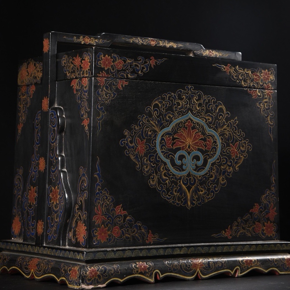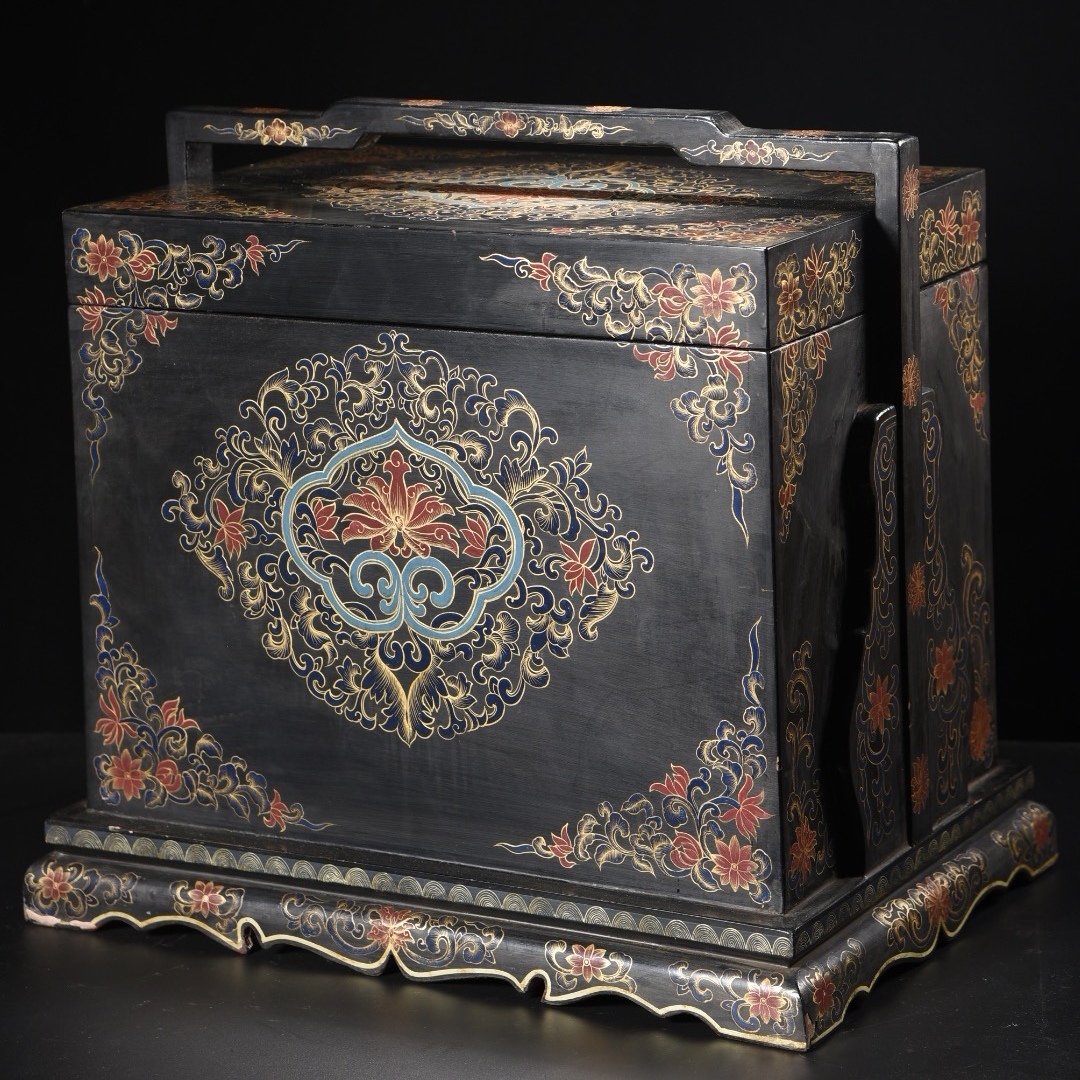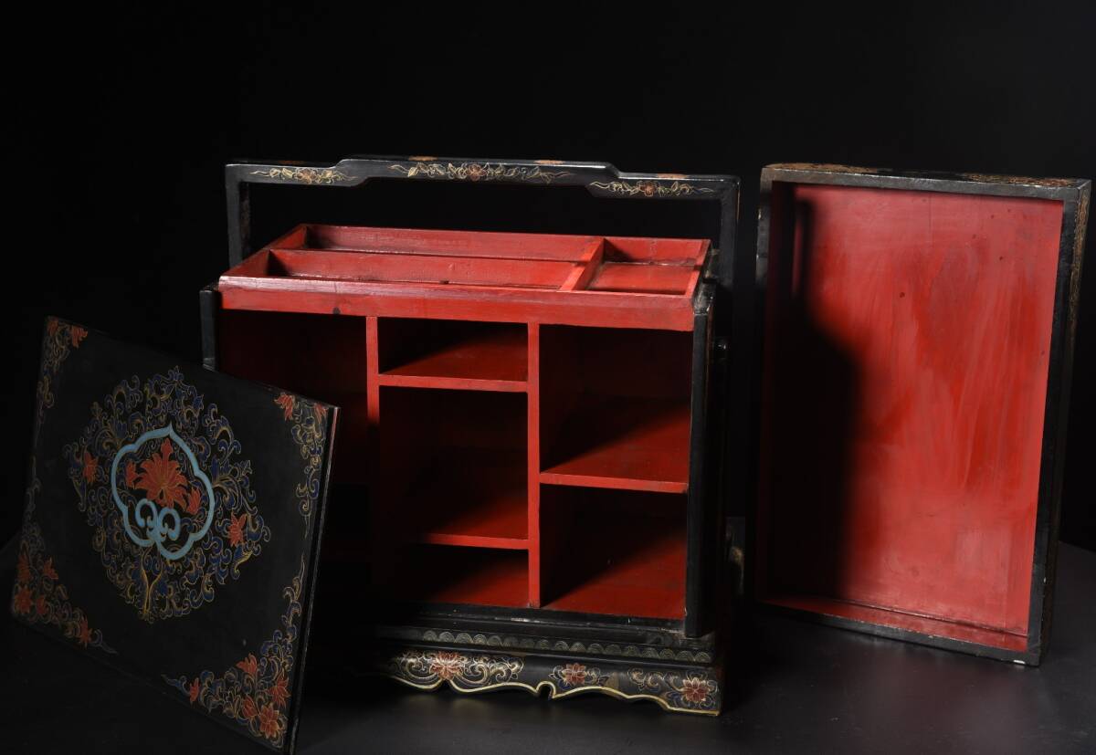 唐物 清 大判木胎大漆 描真金絡枝蓮紋 多宝提梁箱 極細工 古美術品 中国古玩 骨董品 D610