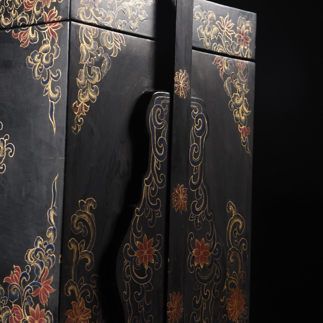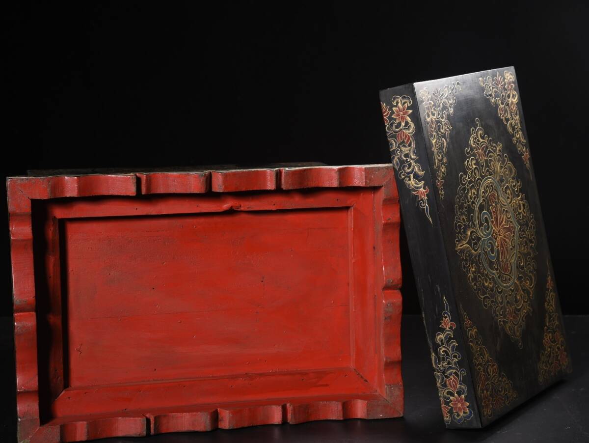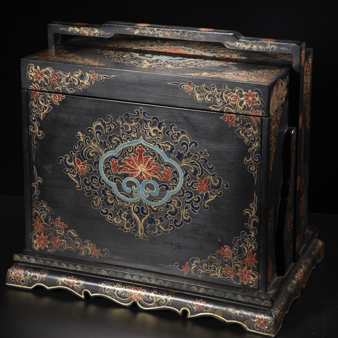 唐物 清 大判木胎大漆 描真金絡枝蓮紋 多宝提梁箱 極細工 古美術品 中国古玩 骨董品 D610
