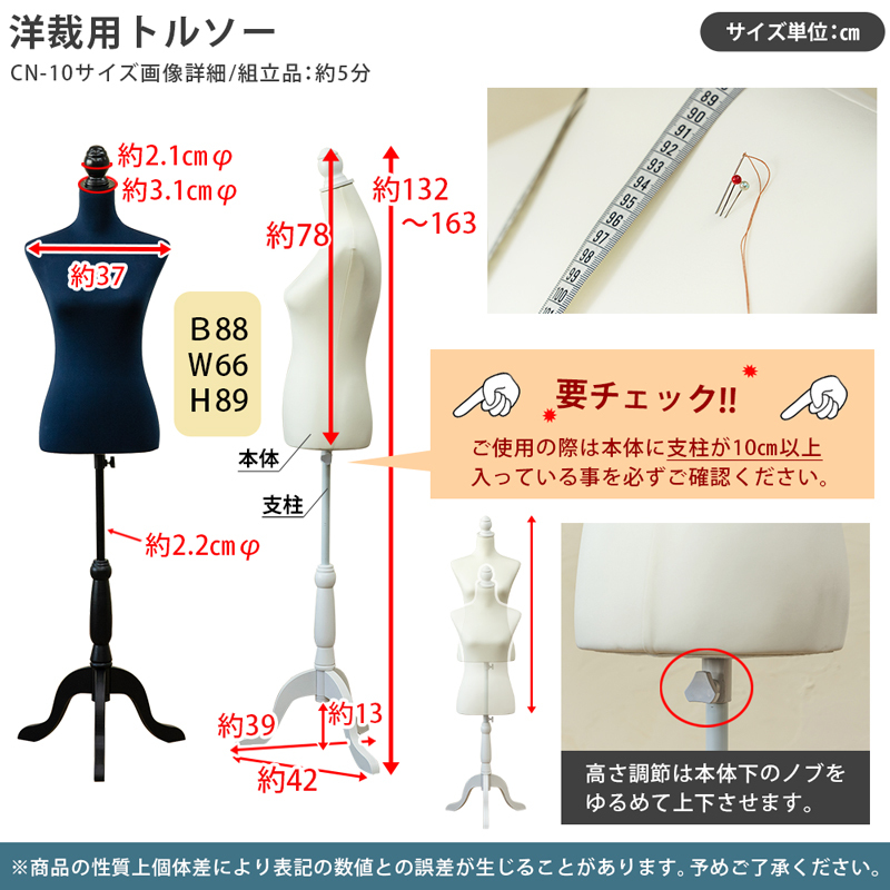 | サイズ | (W)幅42×(D)奥行42×(H)高132~163cm バスト88cm/ウエスト66cm/ヒップ89cm/肩幅37cm |