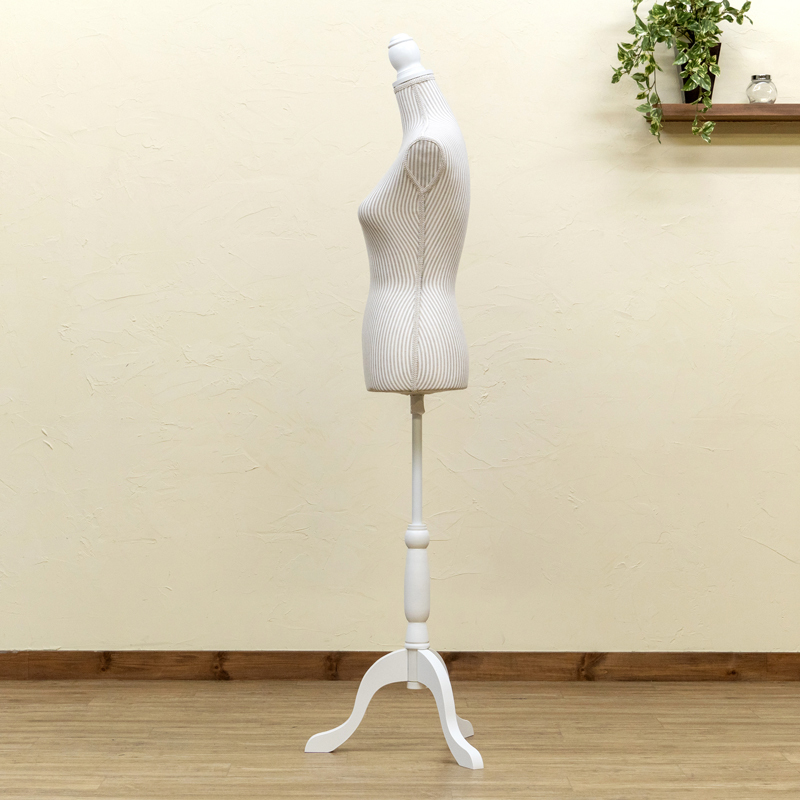 | 商品説明 | 組立品(約5分) 洋裁用にピンが刺せるトルソーです。 オークションやフリマの出品時にも役立ちます。 ボディが強化発泡スチロールなのでピンが刺せるトルソーです。 まち針など手軽に使えるので洋裁用として役立ちます。 洋裁用以外にもお部屋のインテリアとしても使いやすいシンプルなデザイン。 オークションやフリマ等に出品する時にも、トルソーに着せれば分かりやすくなりますね。 ※パンツスタイルは非対応です。(支柱は中央部のみ。位置変更できません) |