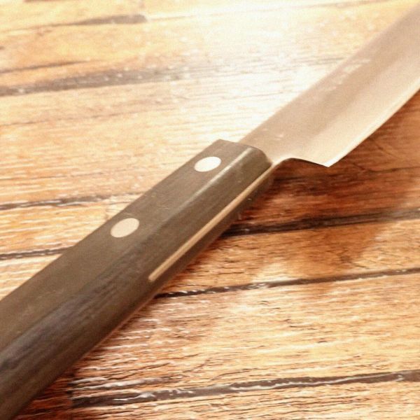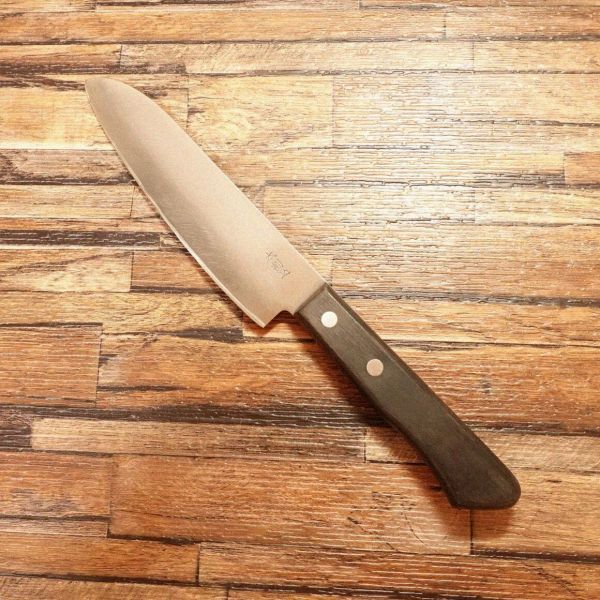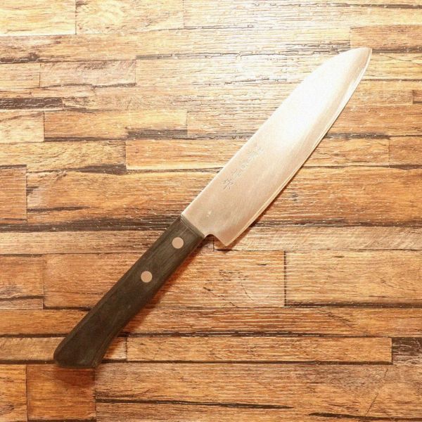 三徳包丁は肉・魚・野菜に幅広く対応できる万能包丁です。多少使用感はありますがまだまだお使いいただけるお品です。