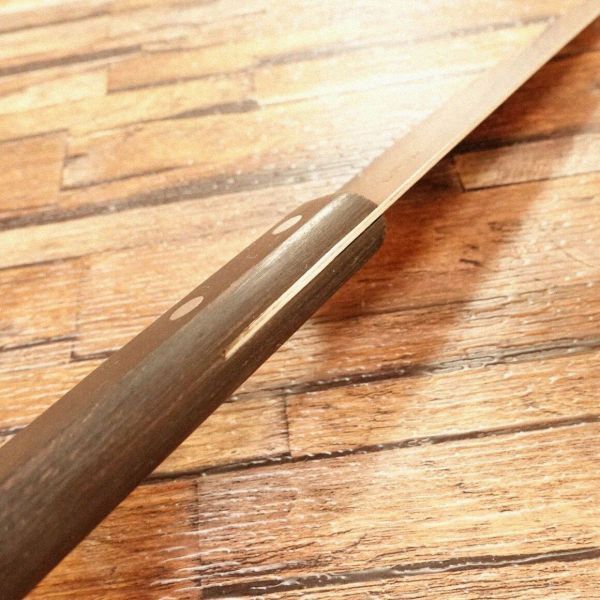 このお品は両刃の割込製で、鋼の切れ味とステンレスの扱いやすさを兼ね備えています。