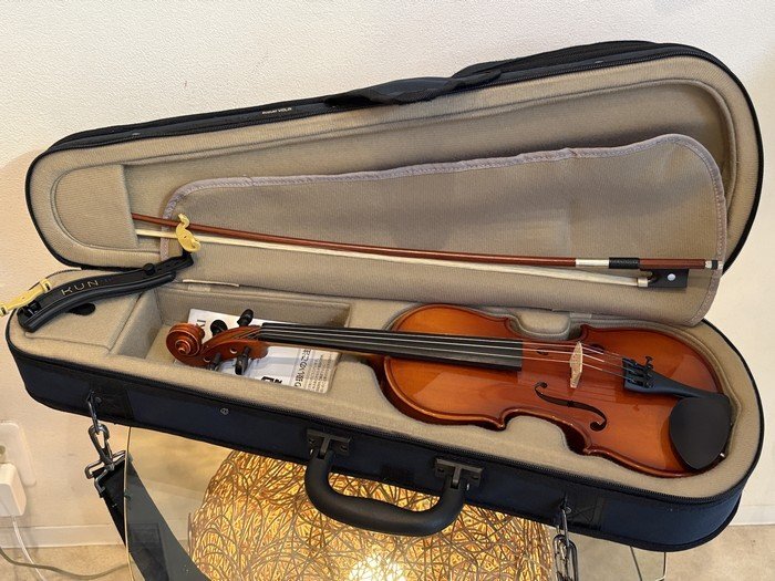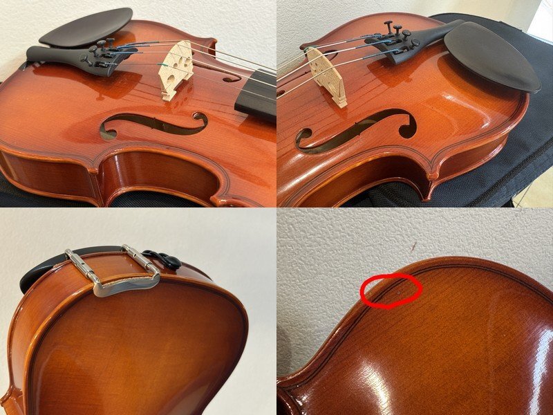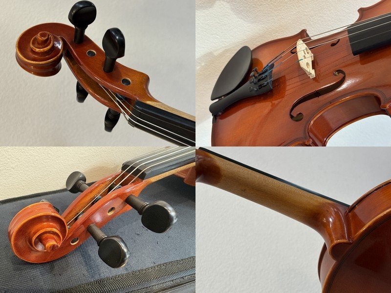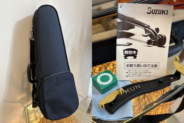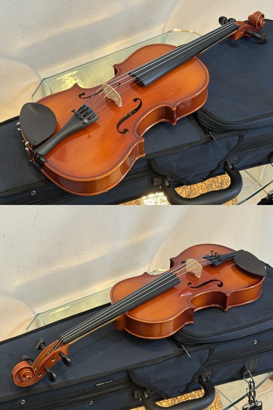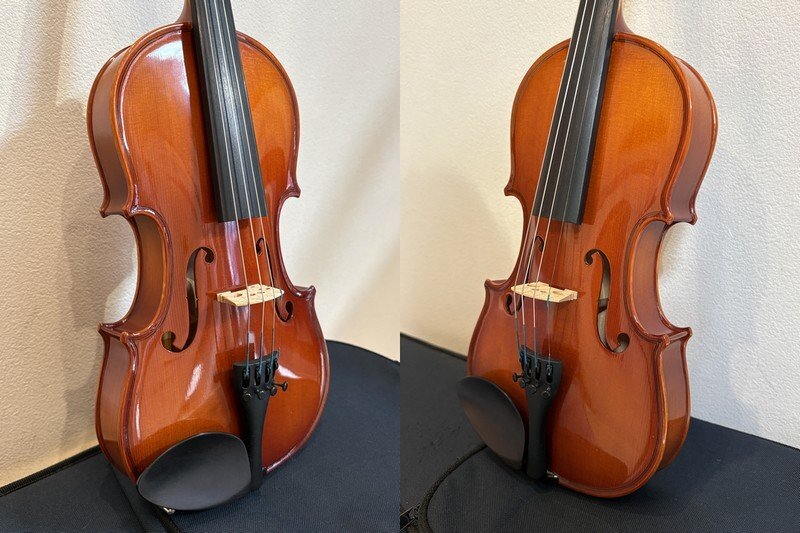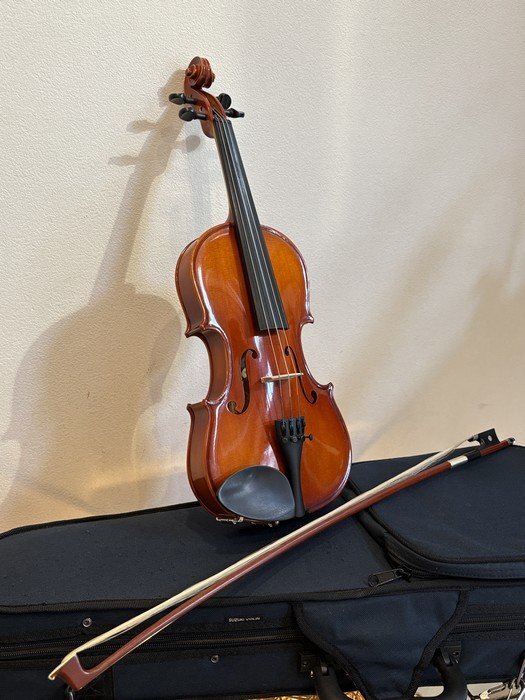 国産バイオリンの老舗・スズキのアウトフィットバイオリンです。表板にスプルース、側/裏板やネックにメイプルを使用。定番素材ならではの安定した音の響きと耐久性を両立させています。弾きやすさを踏まえ、これから始めようという方にお勧めのお品です。