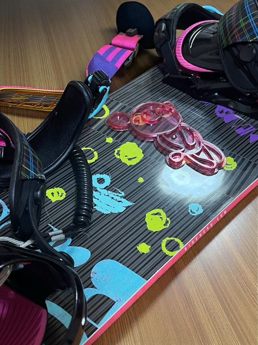 デッキ、ビンディング、ケース、手袋、ゴーグルが付属します。
