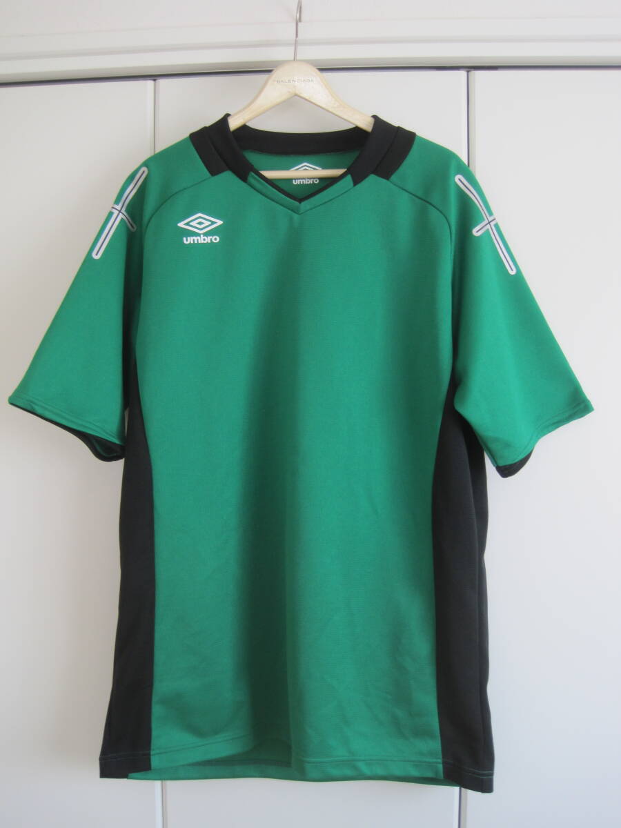umbro アンブロ 立体裁断Tシャツになります。多少の着用感があります。ペラペラの生地ではなく、しっかりとした生地です。カラーはグリーン、サイズはXB、ポリエステル100%、日本製です。肩幅ラグランのため不明、袖丈43cm(肩まで)、身幅58cm、着丈80cmです。素人の採寸ですので若干の誤差、商品状態はご了承ください。 落札後は、ノークレーム、ノーリターン、ノーキャンセルでお願いします。発送方法はレターパックです。ほかにも色々出品していますので良かったらご覧ください。