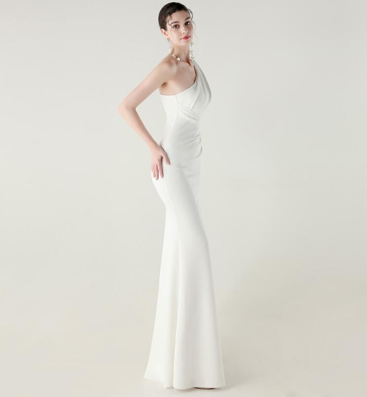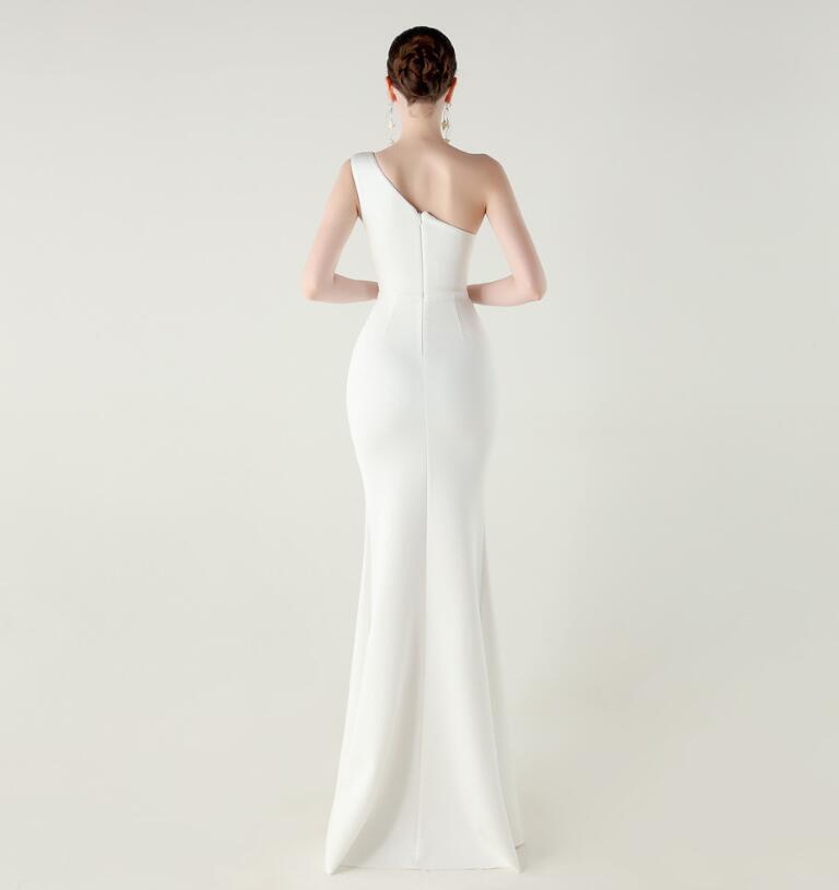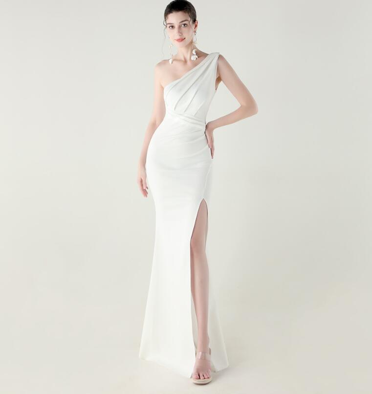 M1016 ワンピースレディース● 着心地抜群 20代30代40代 ● 発表会dress  ロング丈  ワンショルダー  white