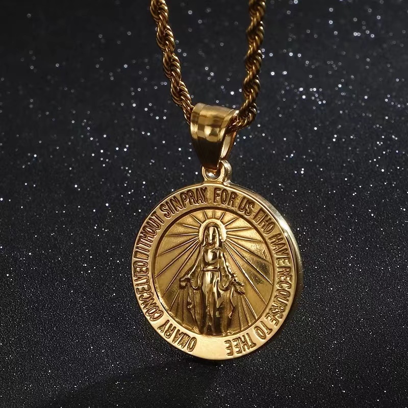 | ★商品説明★ | 気持ちの良い取引を心がけております。 出品中の商品はすべてディスカウント価格となります。 発送に関してはできる限り早めの発送を心がけておりますが仕事の都合により、取引連絡や発送が遅れることもございます。 ■□■□商品紹介■□■□ 聖母マリア奇跡のメダイ( 不思議のメダイ )ネックレスです。材質は医療用器具にも採用されている高級ステンレスSUS316Lを採用。 聖母マリアのネックレスは他にも多数売っていますが、こちらの商品は臨場感・高級感ともに他商品に勝る品質を誇っています。いろいろなファッションにも合わせやすく メンズ レディース とわず人気の商品です。 【奇跡のメダイネックレスとは】 1830年にマリア様が聖カタリナ・ラブレの前に現れ、 マリア様をモデルにしたメダイを作るよう使命をお話しになりました。 このメダイをつけたことにより様々な奇跡が起きた為、「奇跡・不思議のメダイ」と呼ばれています。「信じて身につけていると、大きな恵みをもたらす」とも言われており、お守りや幸運を呼び込むアイテムとしても人気の商品です。 チェーン長さ:約55cm (幅3mm) トップサイズ:約φ25mm ※他にもメンズ・レディースともにオシャレなアクセサリーを豊富に取り扱っています。ご興味のある方は下記の【出品中商品一覧】をクリック下さい(^^) ★★★出品中商品一覧★★★ 『このような商品を探している方にお勧め』 聖母 マリア 奇跡 幸運 をもたらす ラッキーアイテム カジュアル ストリート ヒップホップ ブリンブリン ロック 系など あらゆるジャンルに合うアクセサリー |