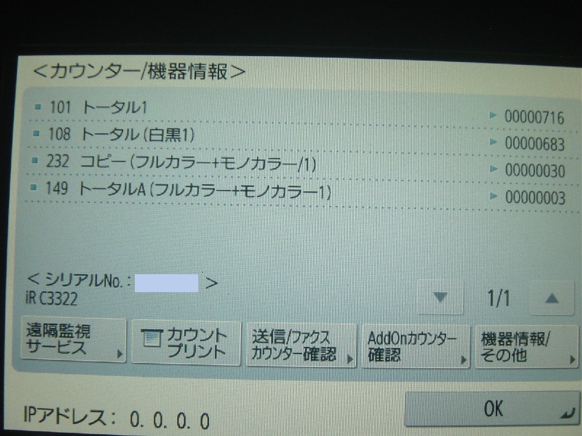 | 白黒トータル:683枚 フルカラーコピートータル:30枚 トータルA:3枚 | |||||