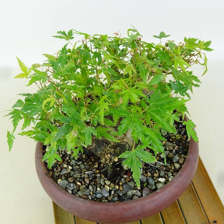 | ■植物ですので撮影時期や季節によって剪定などの手入れにより写真から変化がございます。撮影日をご確認のうえ、ご注文ください。 ■春頃~7月上旬。葉すかし、葉刈りをおこないます。目的として全体的な枝や葉の量を減らし風通しを良くし、幹にしっかりと日光を当てるため。 【紅葉盆栽】 春先に芽吹き、夏頃には新緑、秋頃には紅葉、冬は寒樹姿と四季を通して楽しめる植物です。 もみじには、葉色、葉形、樹形、春先から真紅や紫紅色の芽を吹くもの、秋の紅葉で黄色に染まるものや斑入り葉、獅子葉、細葉、枝垂れ性など非常に多くの種類があります。 |