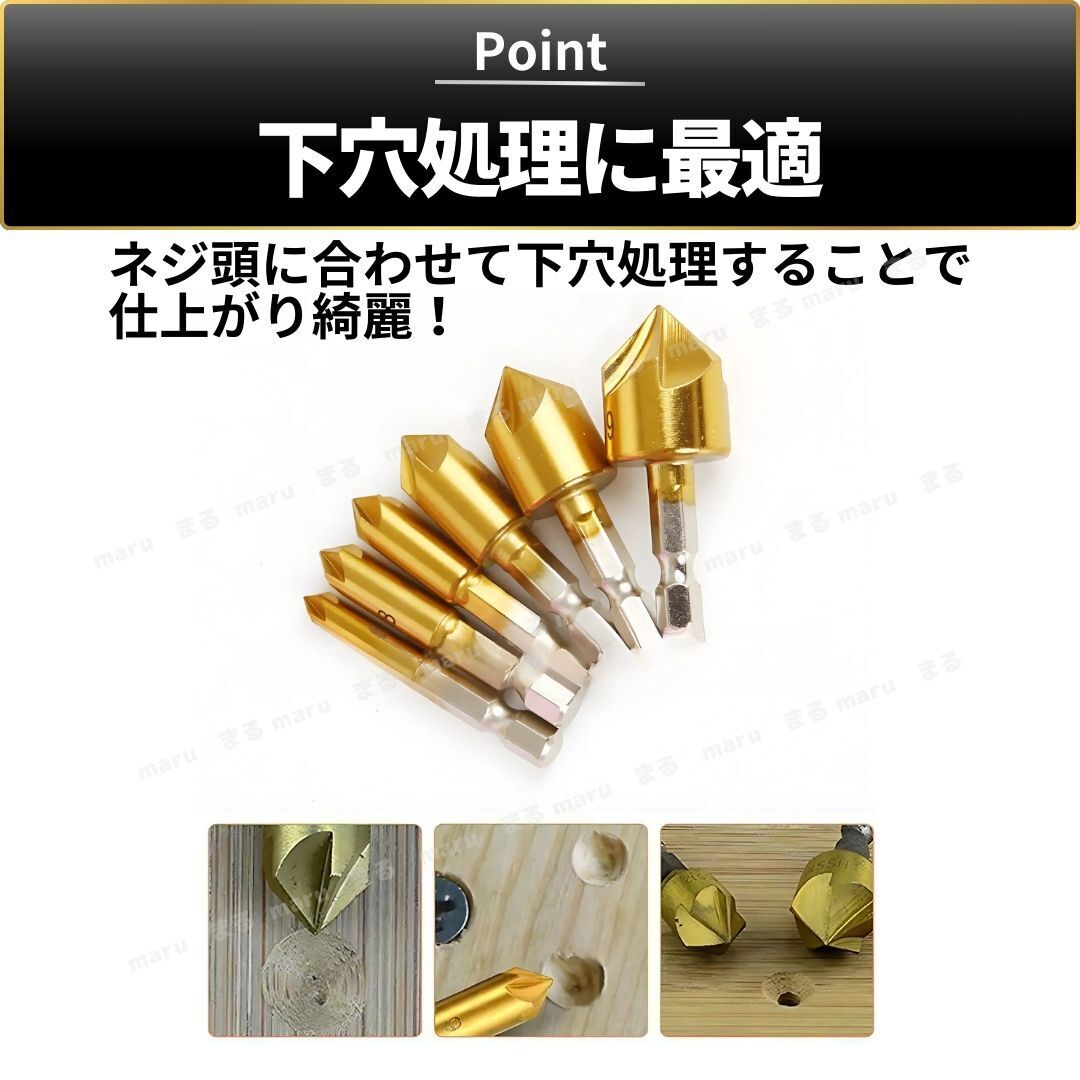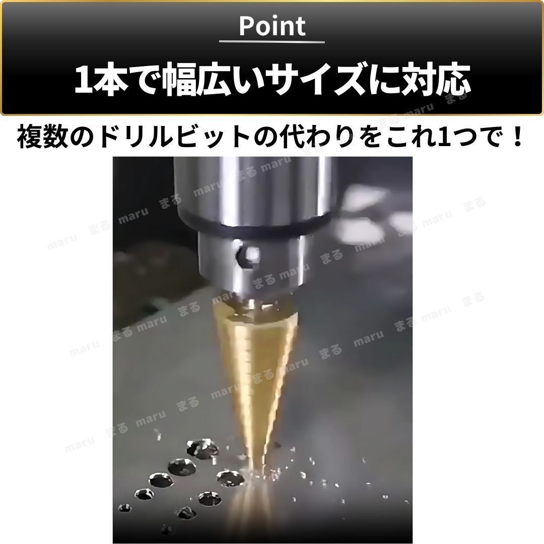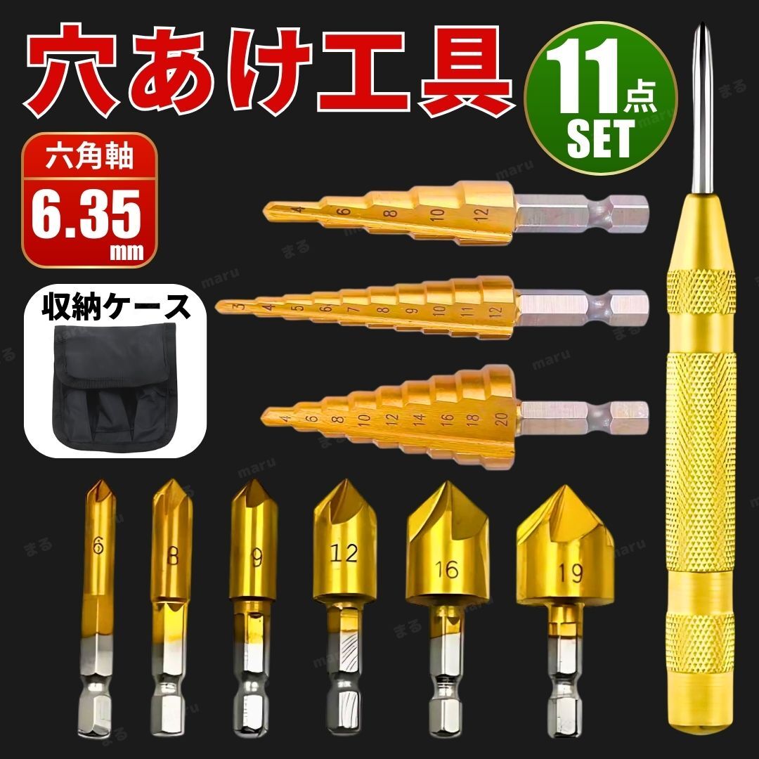 ステップドリル 面取りカッター タケノコドリル ビット センターポンチ バリ取り 工具セット 皿取錐 DIY 電動ドリル 六角軸 6.35mm 穴あけ