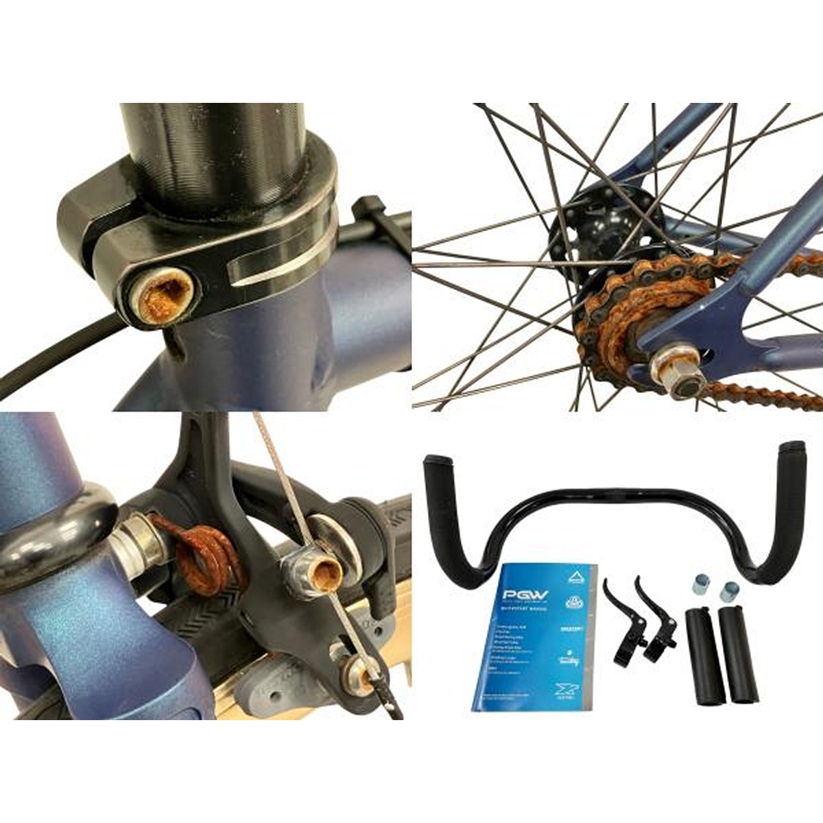 【状態について】 使用や保管に伴い使用感が見受けられます。 全体的に錆つきがある状態です。 特にチェーンに錆付きが多く見受けられ、スムーズに漕ぐことが難しい状態です。 上記状態なども考慮しジャンク品として出品いたします。 【動作について】 前後ブレーキ動作確認しております。 タイヤのパンクはございません。 ・シートチューブ(C-T) 約550mm ・トップチューブ(ホリゾンタル換算) 約600mm ・ヘッドチューブ 約140mm ※メジャーで測っているので誤差がございます。 【付属品】 画像参照 ※付属品に関しては画像にてご確認いただけるものが全てとなっております。 ※こちらの商品は当店の販売証明書をお付けして販売させて頂きます。 ※一部商品は在庫自動連携しているため、ご購入後に在庫がない場合がございます。 ご了承の上、ご購入くださいませ。 【佐川急便】 こちらの商品には防犯登録に必要な販売証明書を添付してお届けさせていただきます。 また、お客様の送料負担軽減の為、前輪、後輪を取り外し梱包して発送致します。 (自転車の形状によってはサドル・ハンドル・泥除け等の付属品も含む) 【ご注意】 前オーナー様の防犯登録シールが貼ってある場合がありますが、 当店では必ず防犯登録を解除して販売をしておりますのでご安心くださいませ。 また、解除を申請してから手続きまでに約1ヶ月前後の期間がございますので、 ご理解の程よろしくお願いいたします。 |