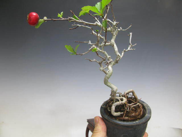 ★実サンザシの小品盆栽です、照りのある真っ赤な実が綺麗です。