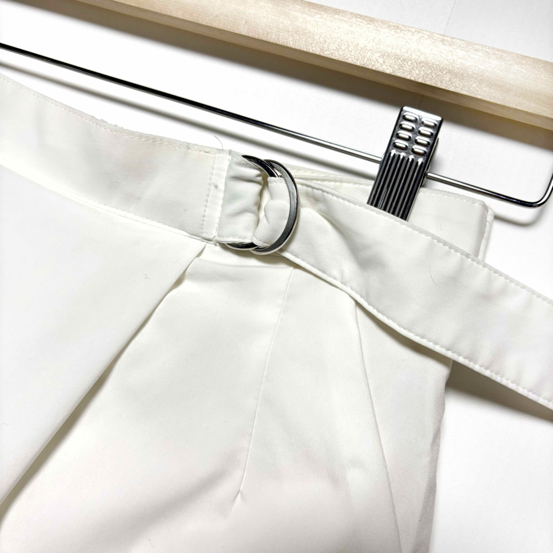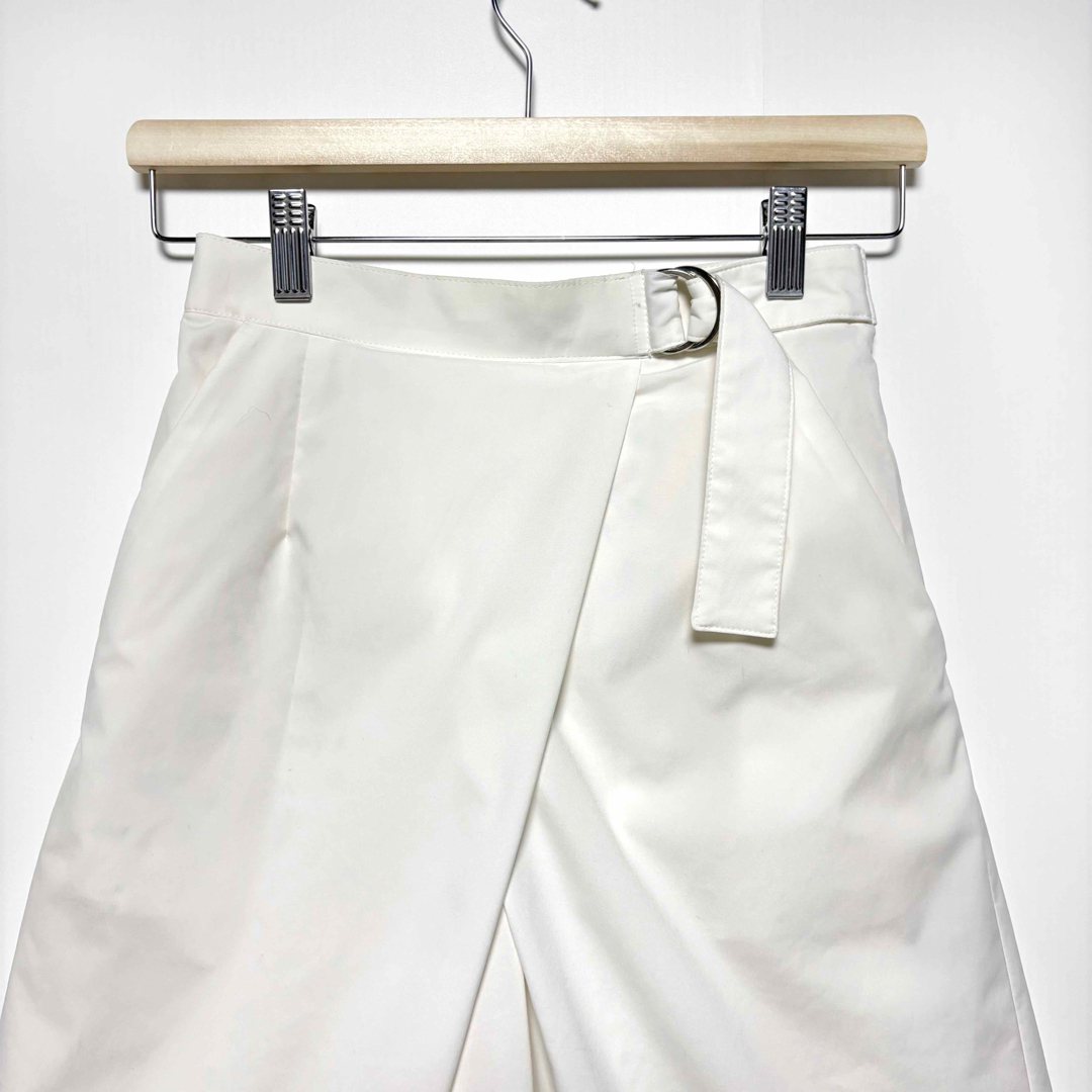 フロントのラップデザインとDカンベルトが、いつものコーディネートを格上げし、大人のきれいめスタイルを簡単に叶えてくれます。背面はゴム仕様なので、見た目の美しさとストレスフリーな着心地を両立。