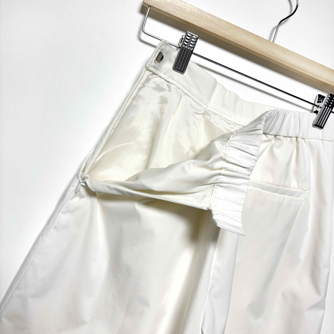 こちらのパンツの最大の魅力は、まるでスカートのような優雅なシルエットと、体型を拾いにくい計算されたワイドデザインです。