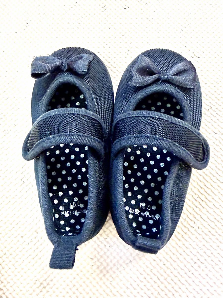 フォーマルシューズ 女の子 黒 リボン付き 15センチ