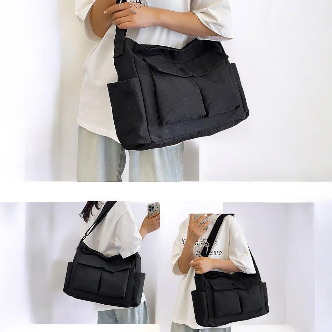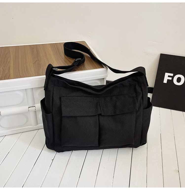 ショルダーバッグ メンズ 斜めがけ 肩掛け キャンバス サイドポケット 通勤 通学 習い事 部活 スポーツ ブラック