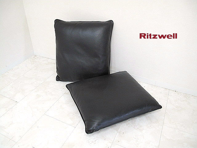 【展示品】Ritzwell リッツウェル「LIGHT FIELD ライトフィールド」本革サポートクッション 2個セット 17.8万 レザークッション フェザー