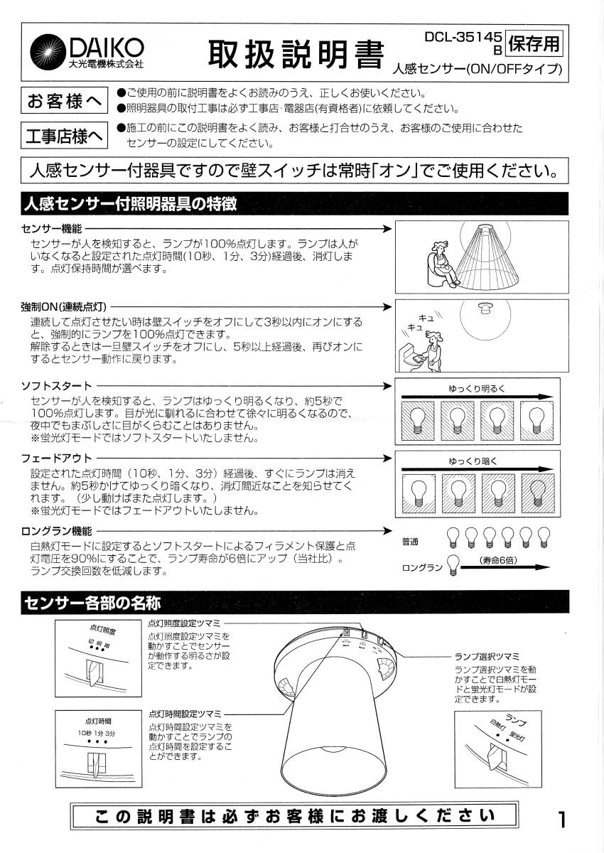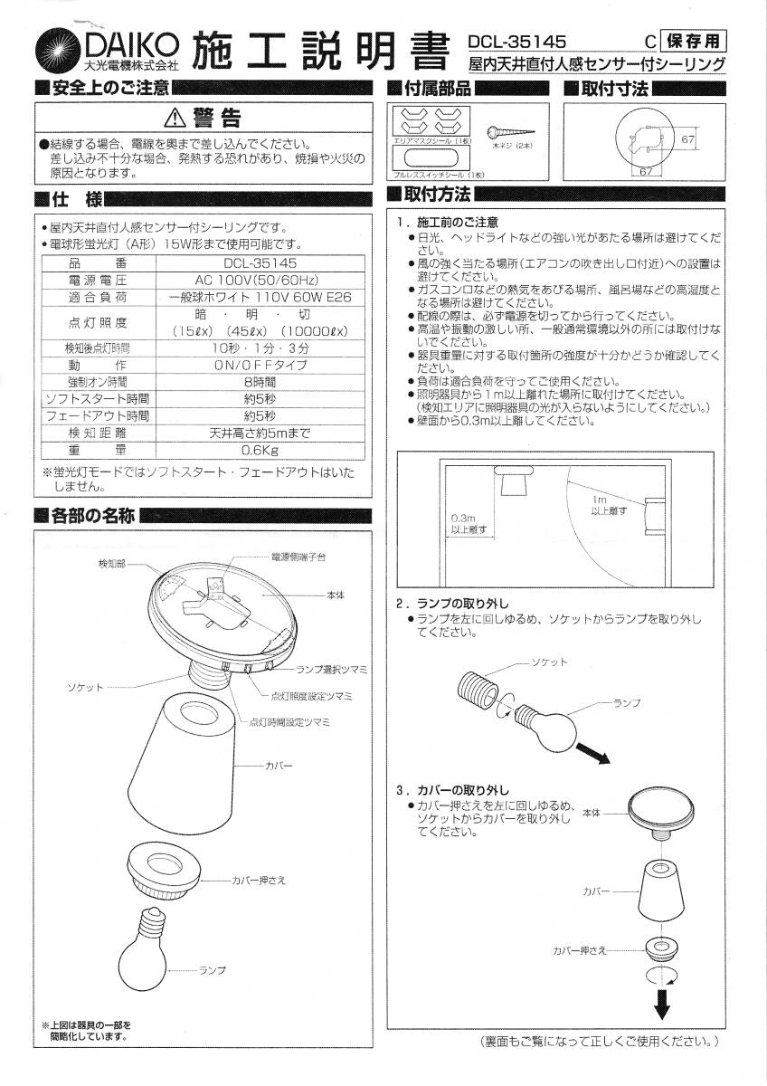 DAIKO 大光電機 DCL-35145 人感センサー(ON/OFFタイプ)