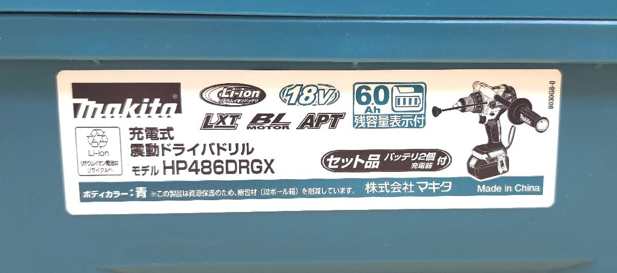 動作良好 マキタ/充電式震動ドライバドリル(青)/HP486DRGX/18V6Ah/バッテリ2本・充電器他 付属品完備